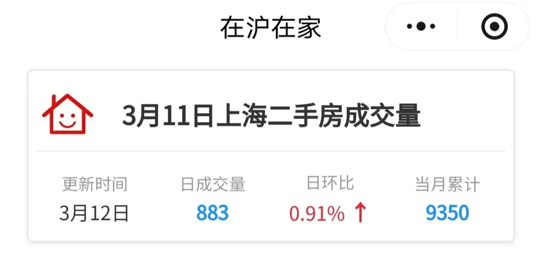 1⃣️昨日上海二手房成交883套,日环比上涨📈0.91%,当月累积成交9350套。