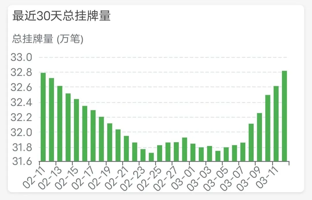 2⃣️挂牌量增长更猛📈,目前328155笔,日均增长2000笔以上,从下图也可以看出,增长非常快。
