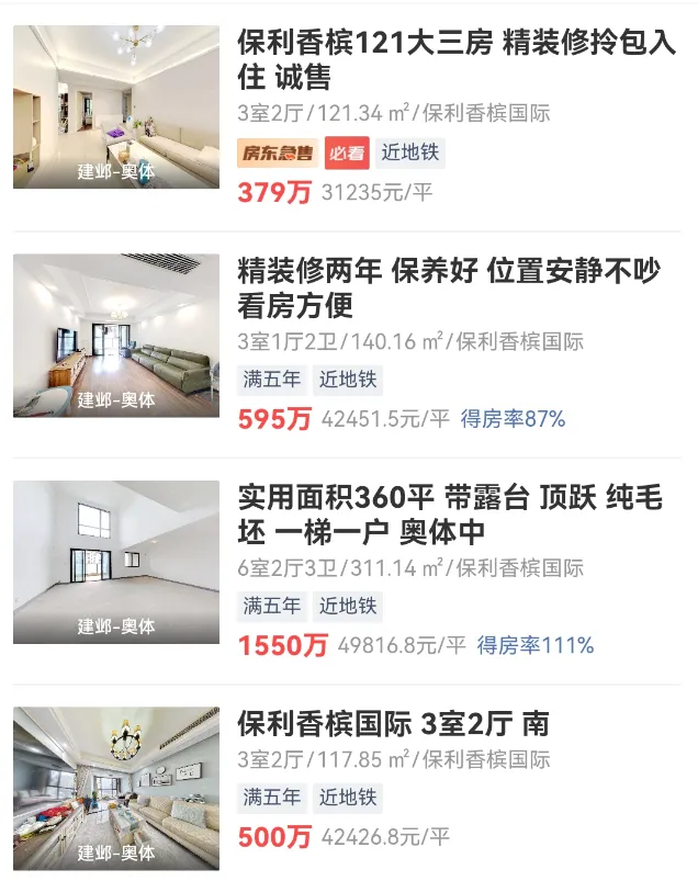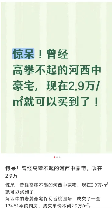 比如保利香槟国际,去年6月有网友在社交平台分享曾经高攀不起的河西中豪宅,单价2.9万/㎡就能买到了。我们查看成交,这个小区去年还有2.4万/平成交的房源。