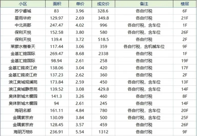 我们看下中介分享的部分河西中的成交房源表,“看滨江奥城静思苑近期卖出的这套139.52平的,我们真没想到还能卖到430万!”我顺手查看了前期数据,这个盘已经有大半年没有成交了,而河西的价值,始终存在。