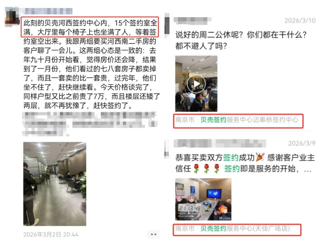 “周末的时候你来的话,可能都没空接待你,我们店所有人都在外面带看。”河西中一门店中介笑着跟我分享最近市场的火爆。