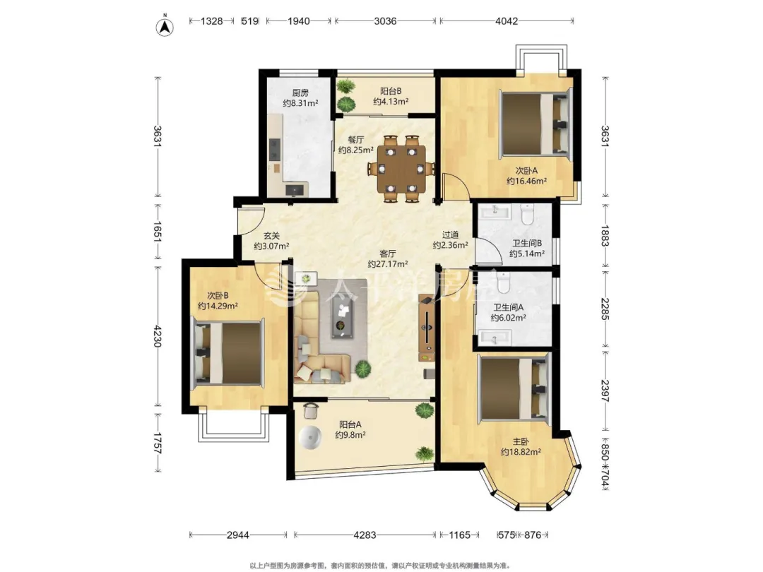 浦东北蔡二手房出售,大华锦绣11街区145m²大3房,飞机户型,看房联系17621161183