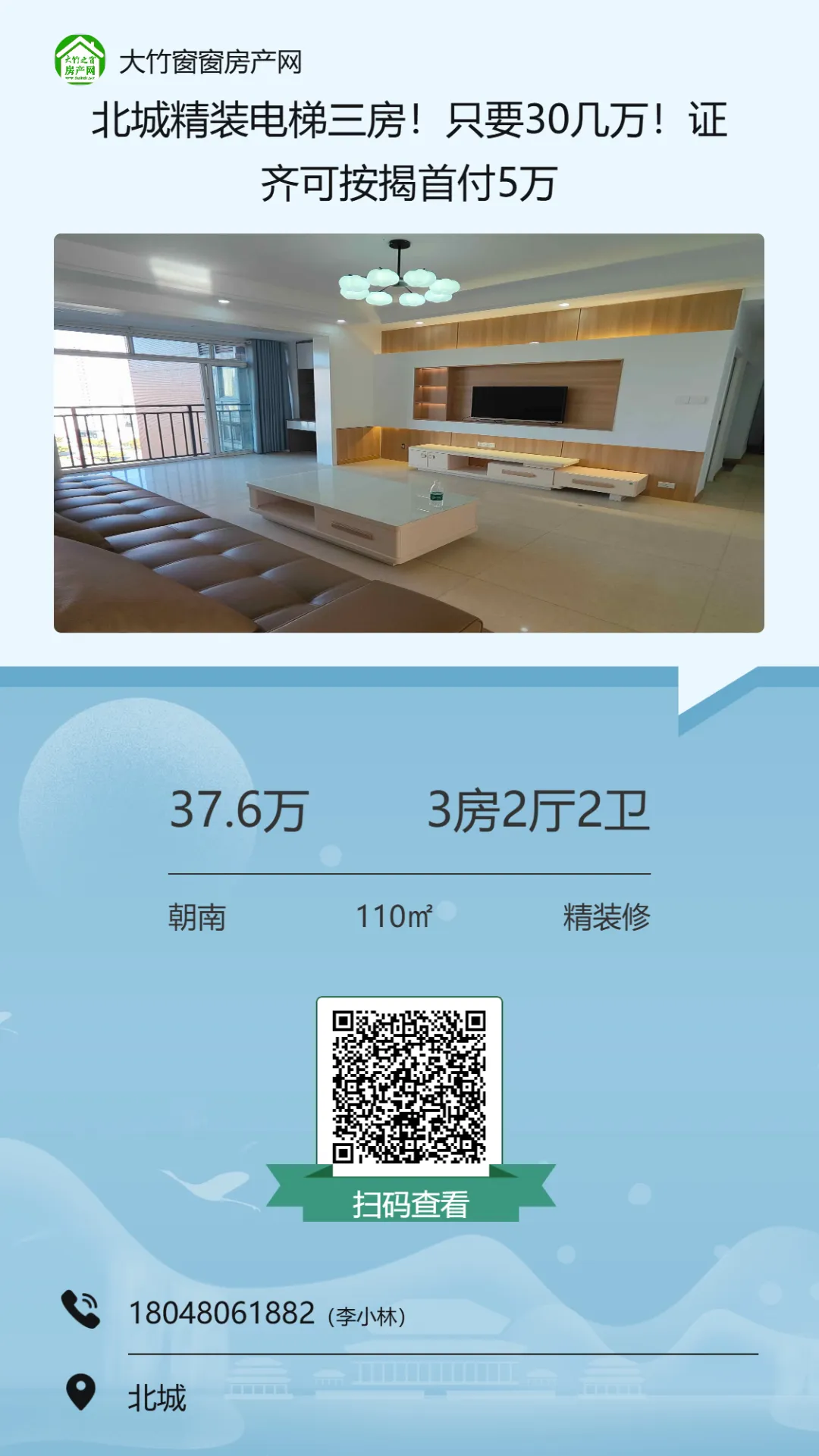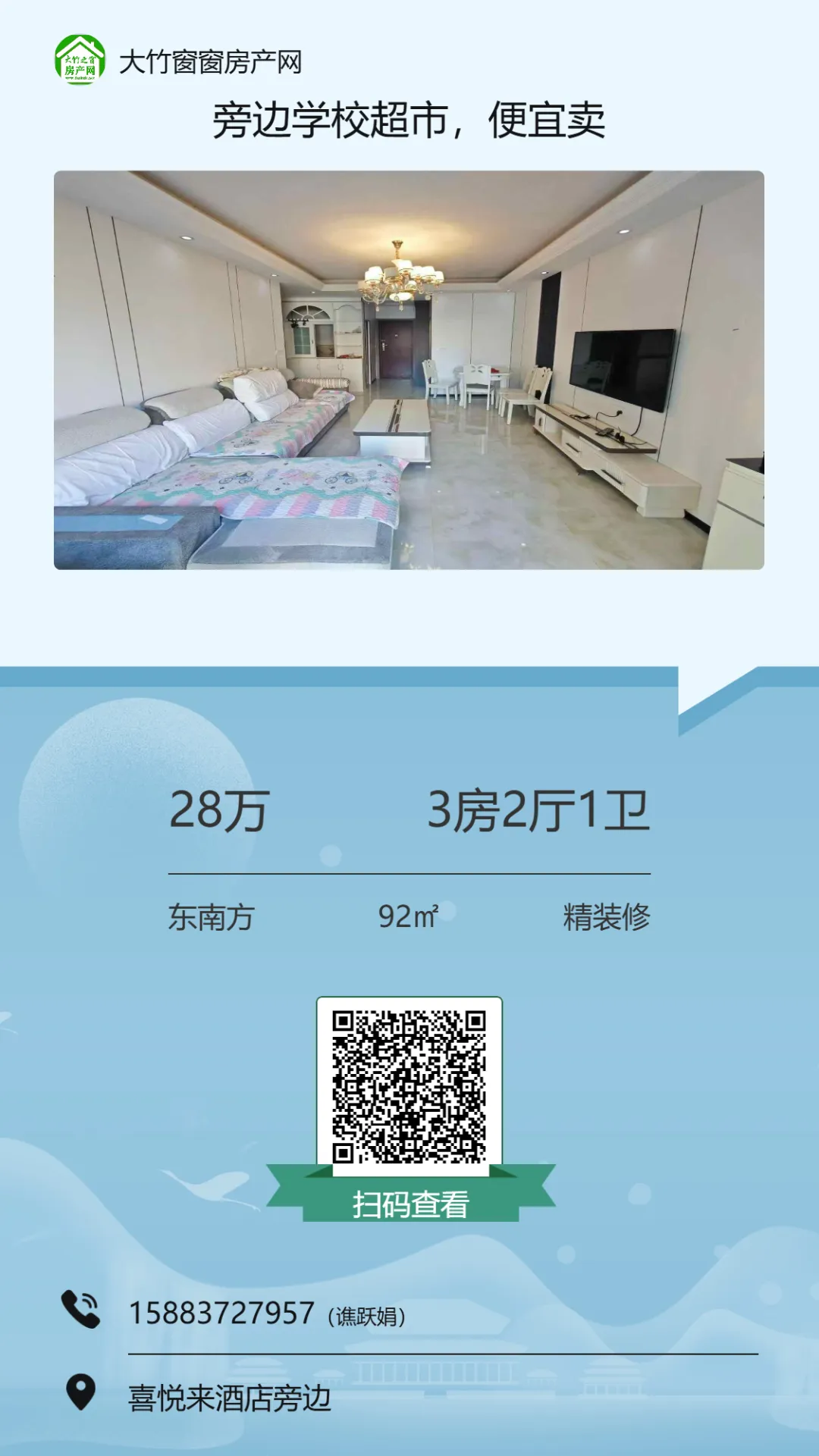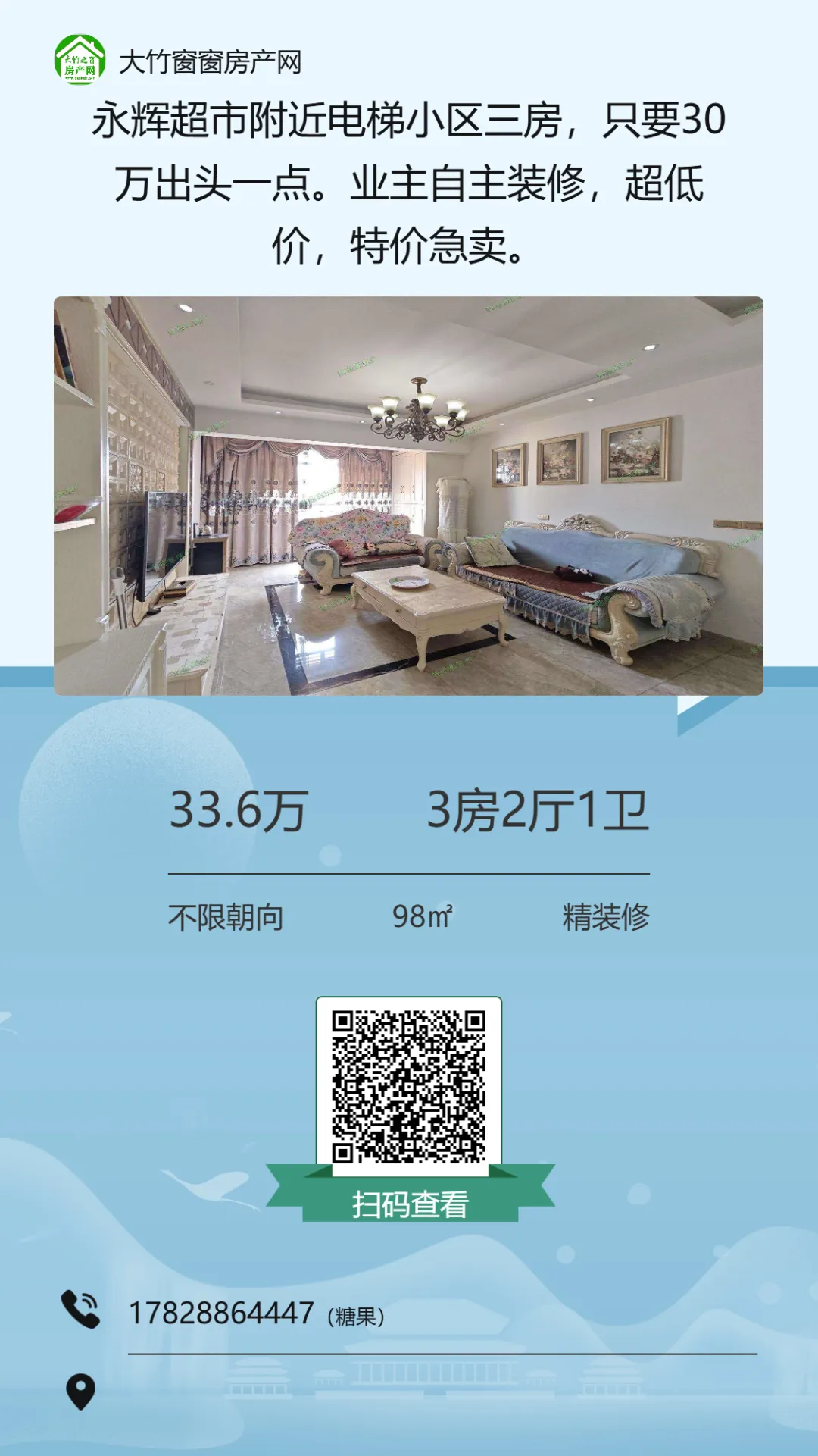 【大竹房产】精装电梯三房,楼下就是超市,可按揭
