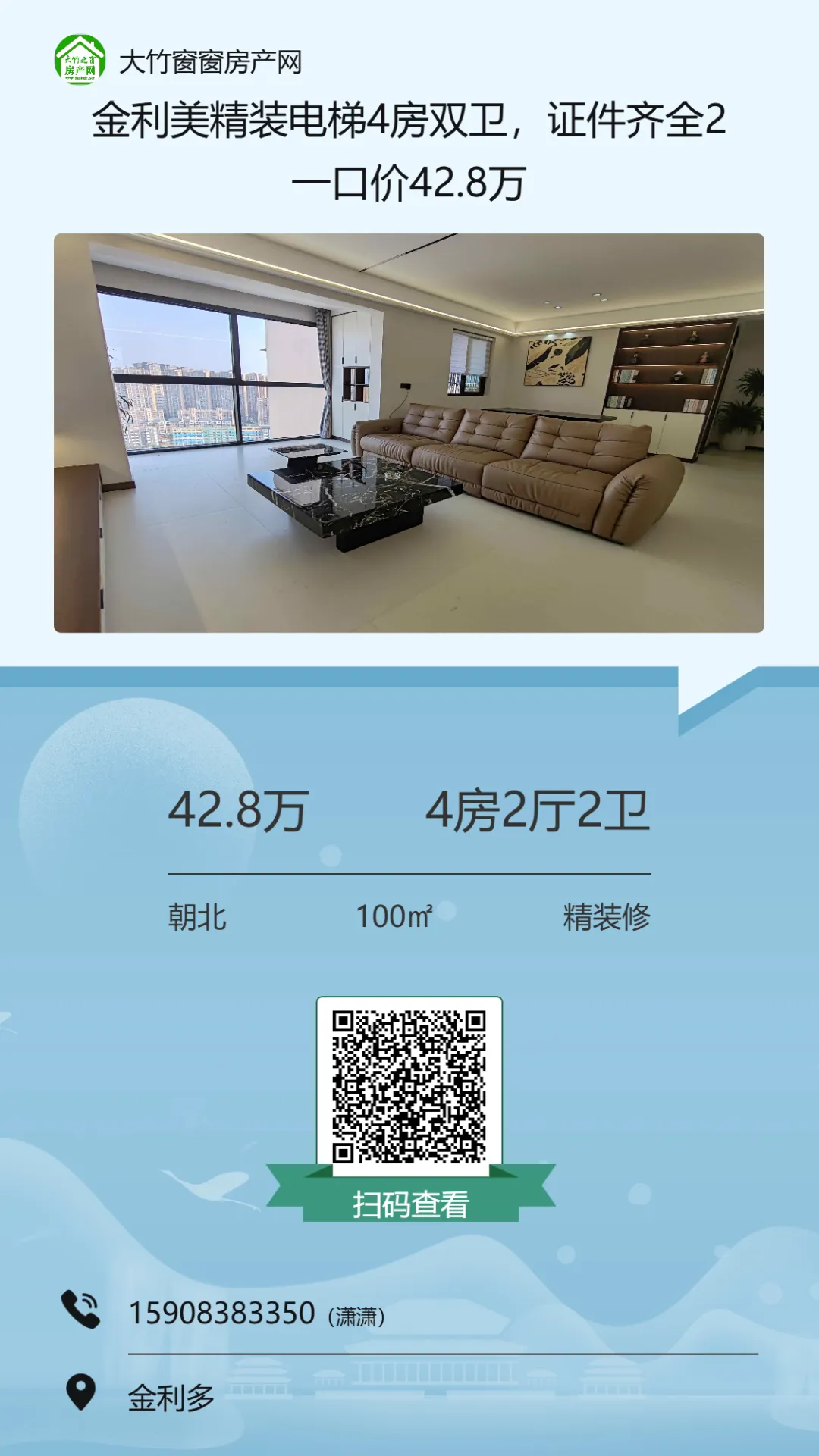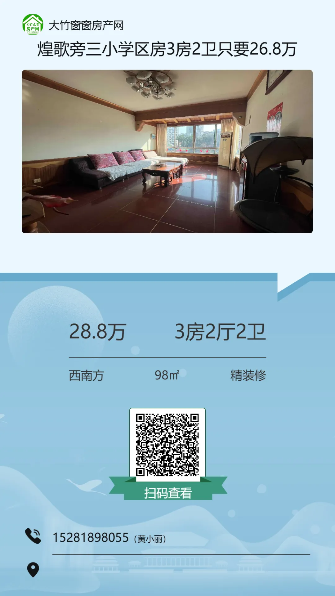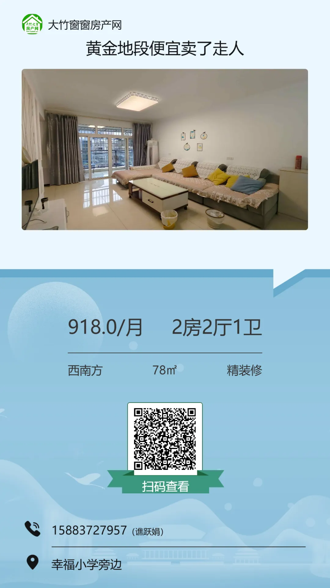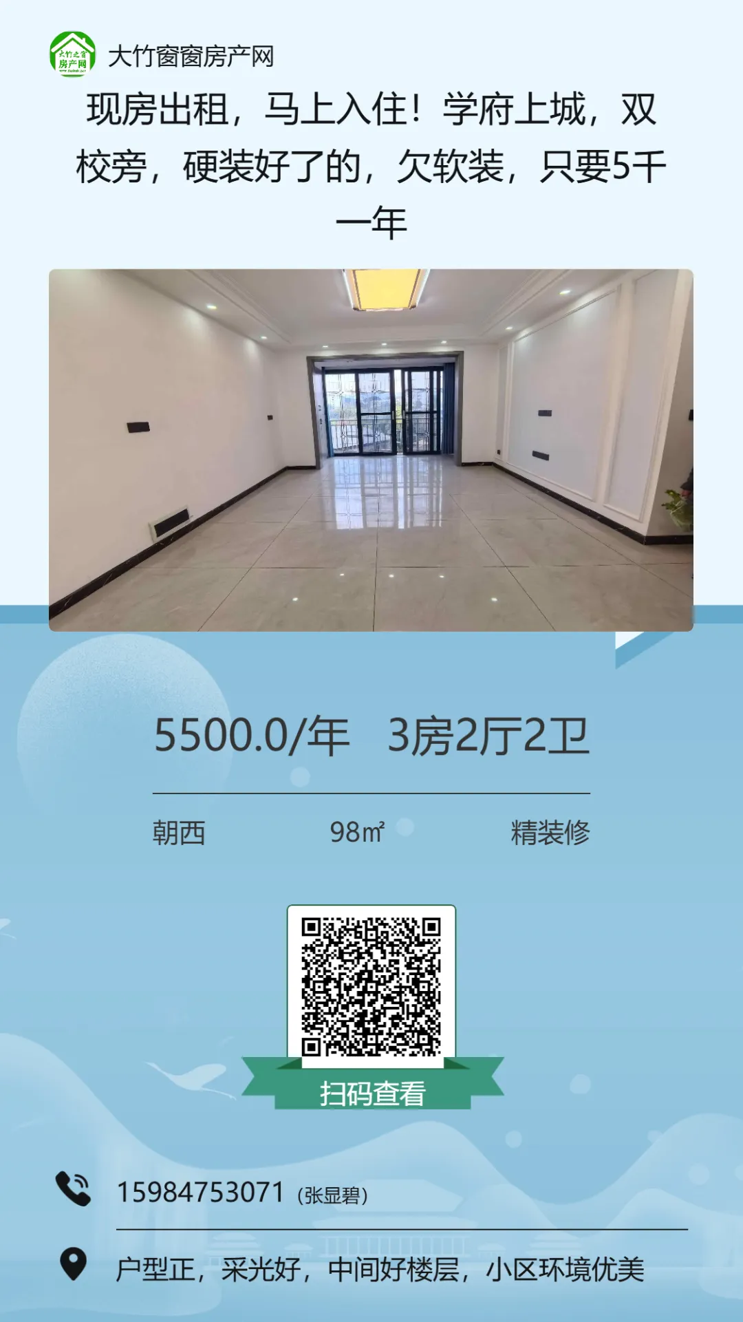 【大竹房产】精装电梯三房,楼下就是超市,可按揭