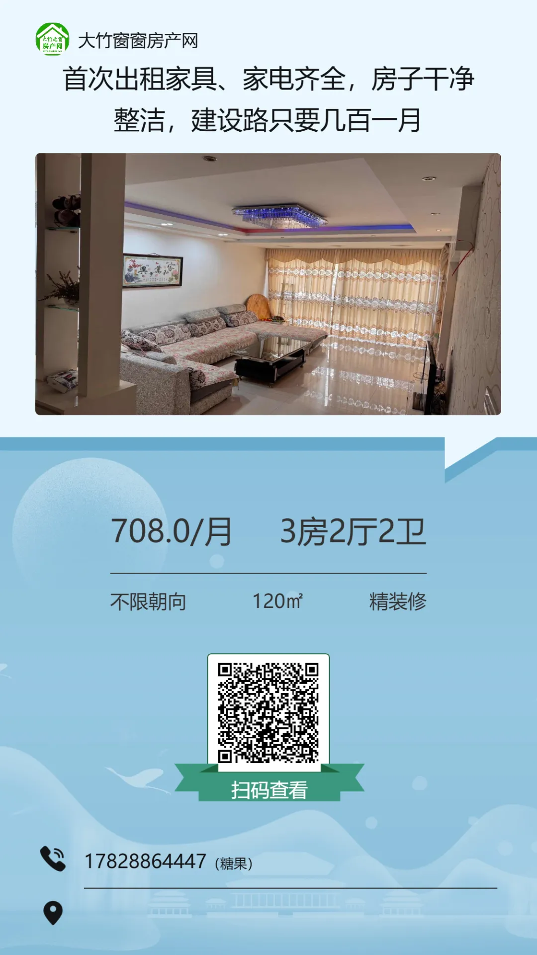 >【大竹房产】精装电梯三房,楼下就是超市,可按揭