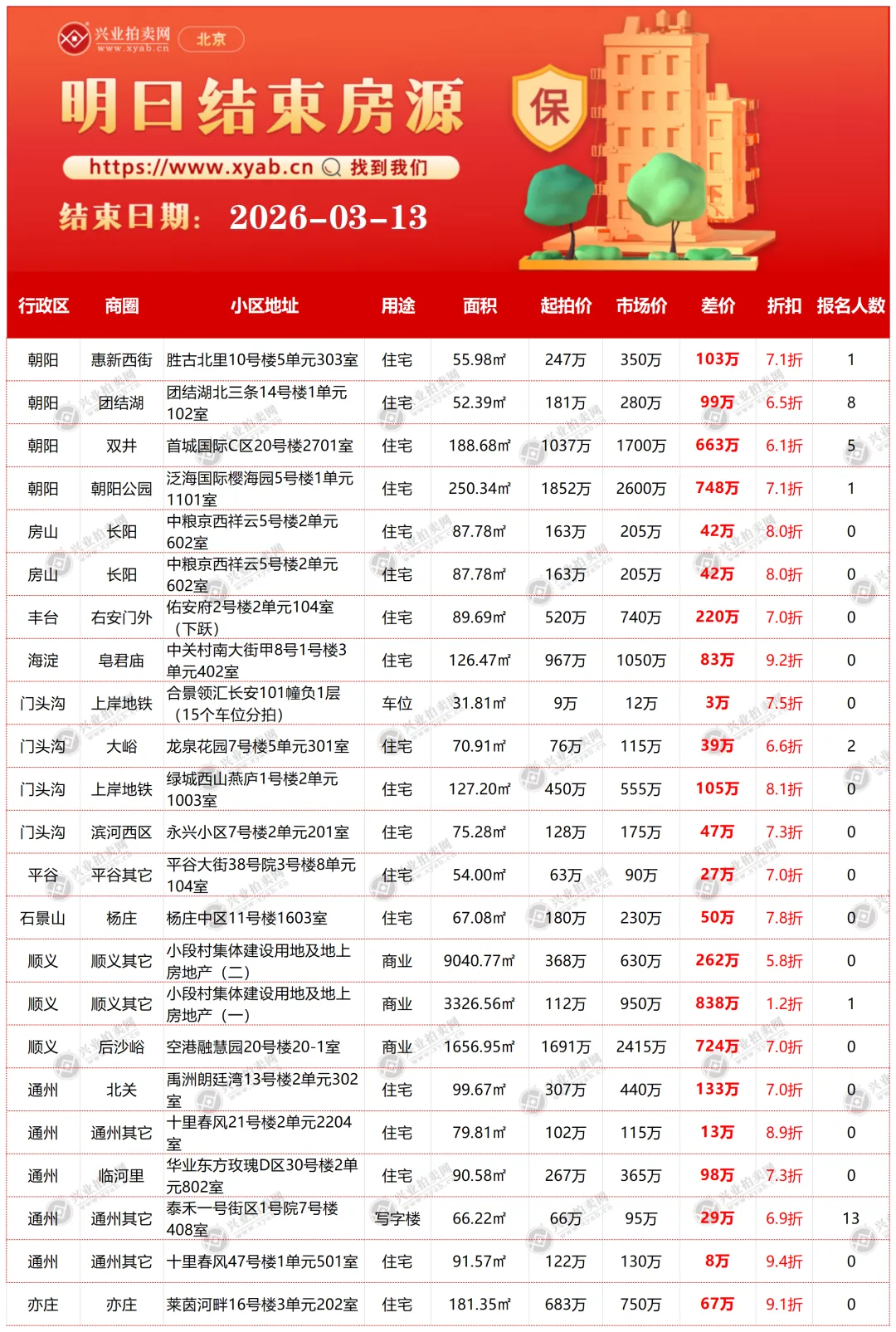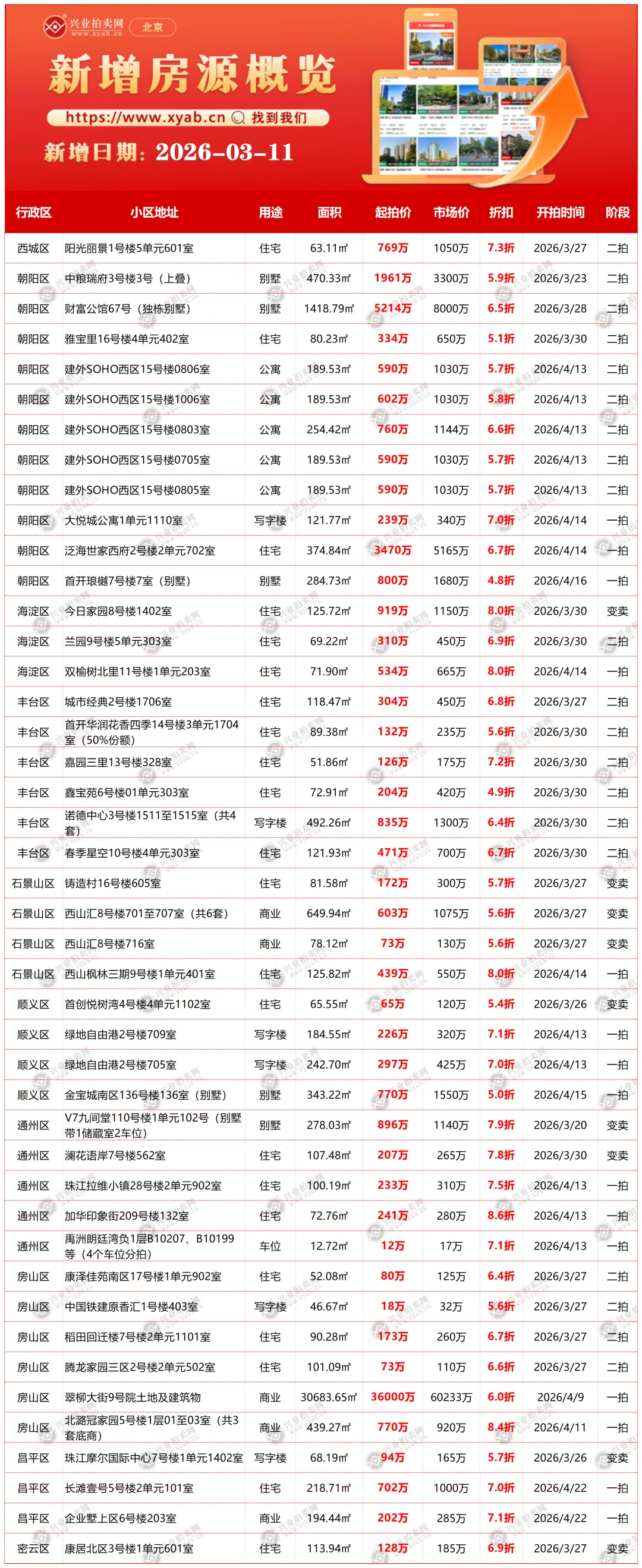 兴业拍卖|3月12日房产简报:朝阳公园旁,3470万拍泛海世家西府374㎡大平层