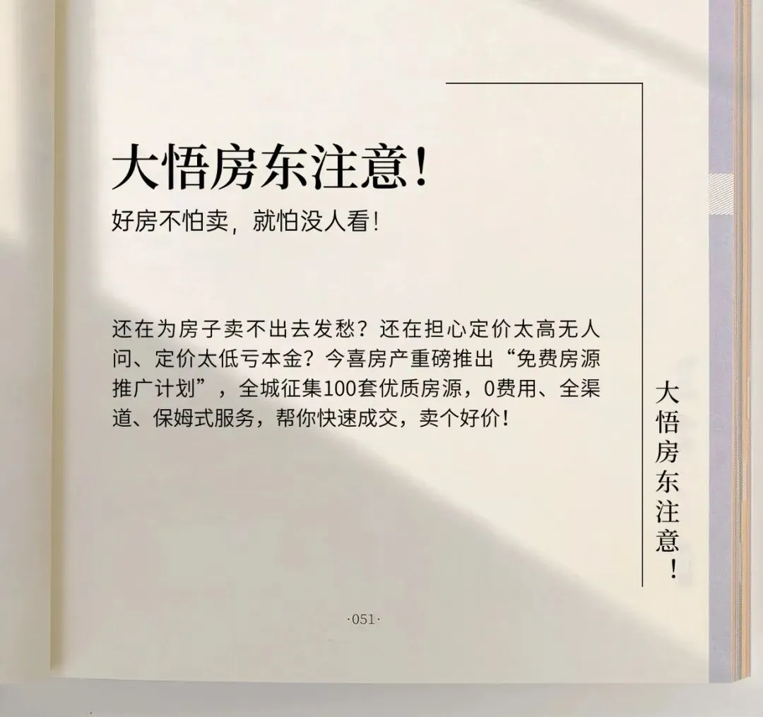 【房东福利】免费推广!大悟今喜房产“百套优质房源征集”,曝光量提升300%