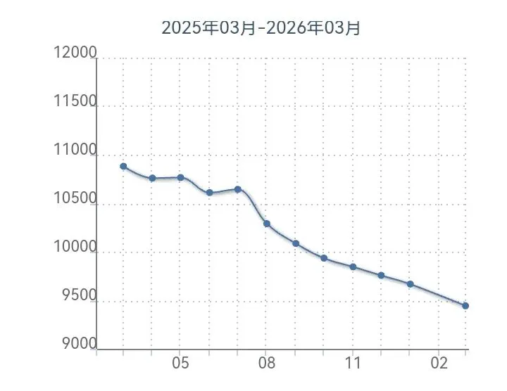 泰安东区3月二手房参考均价9443元/平,环比2月下降2.31%,同比去年同期下降13.21%。最近一年中,2个月房价上涨,10个月房价下跌。