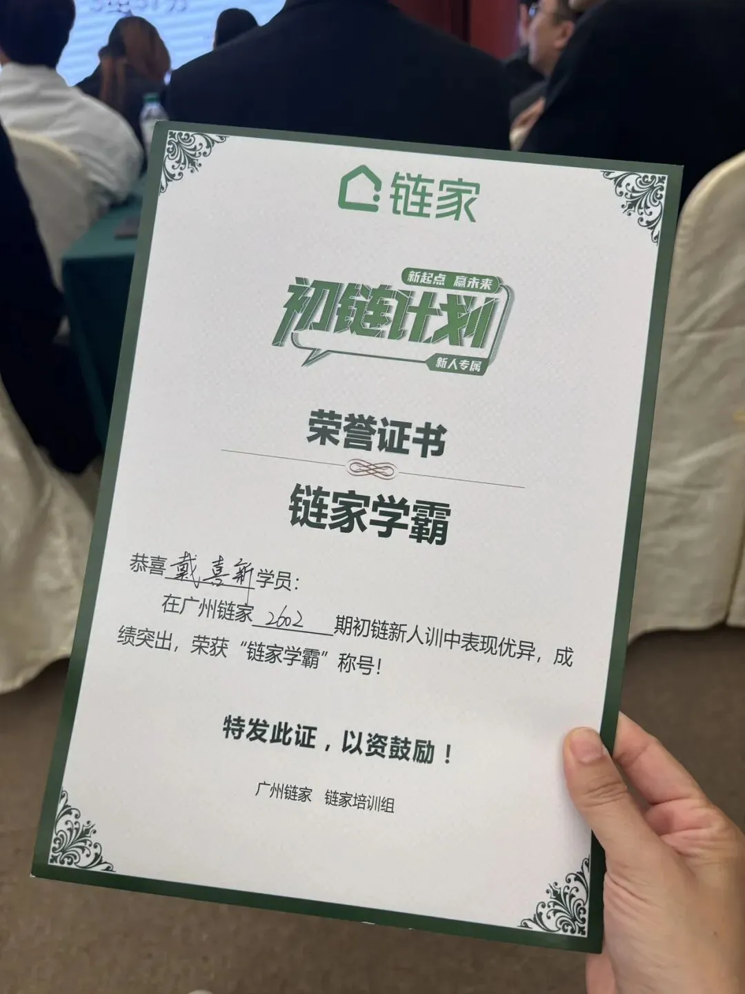 我拿了个“链家学霸”,全场学员里,考试得分最高的那个。