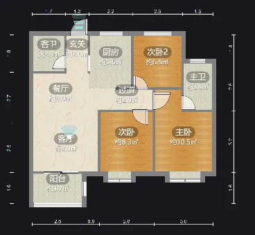 户型布局:3室2厅2卫