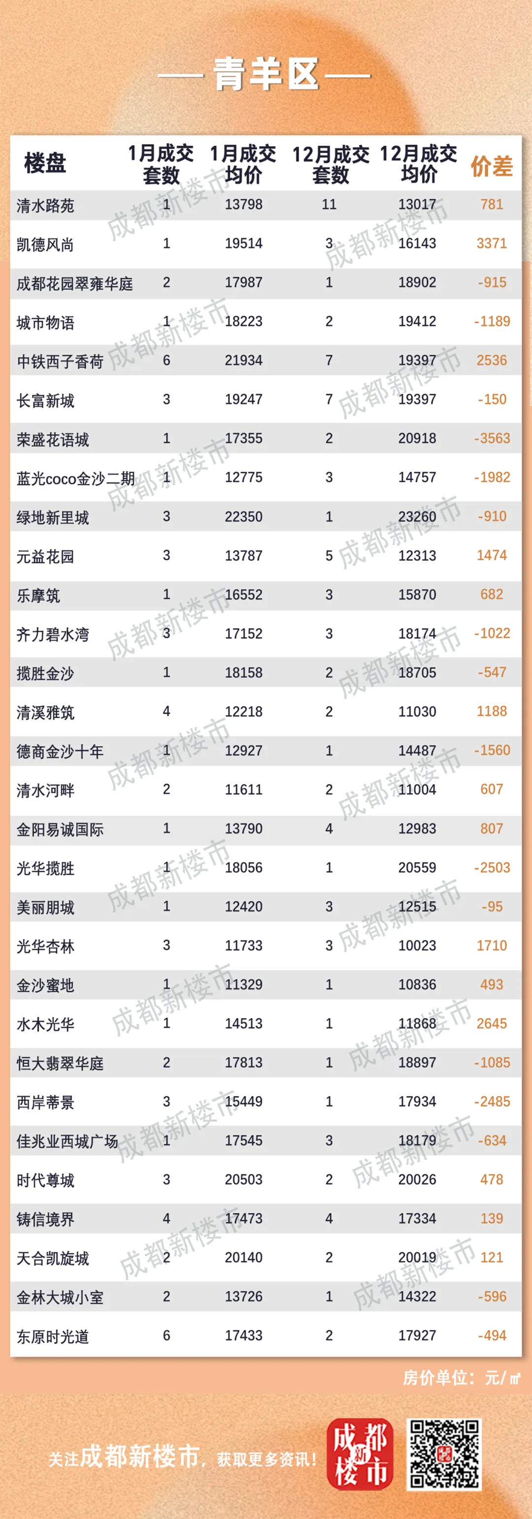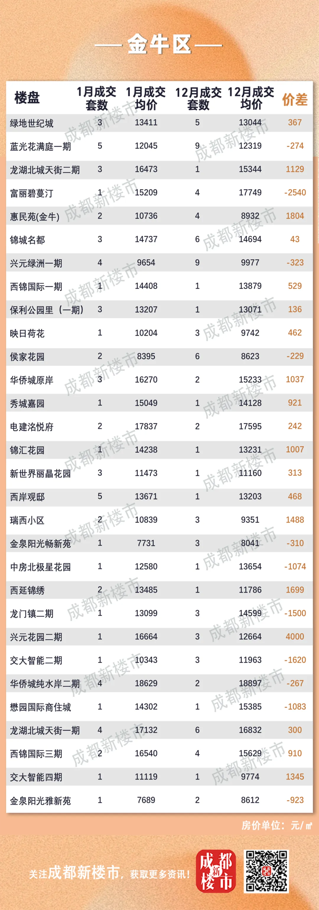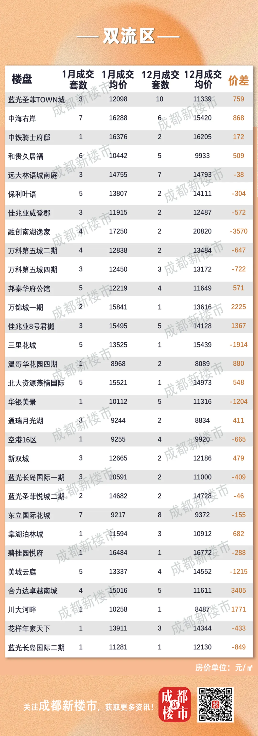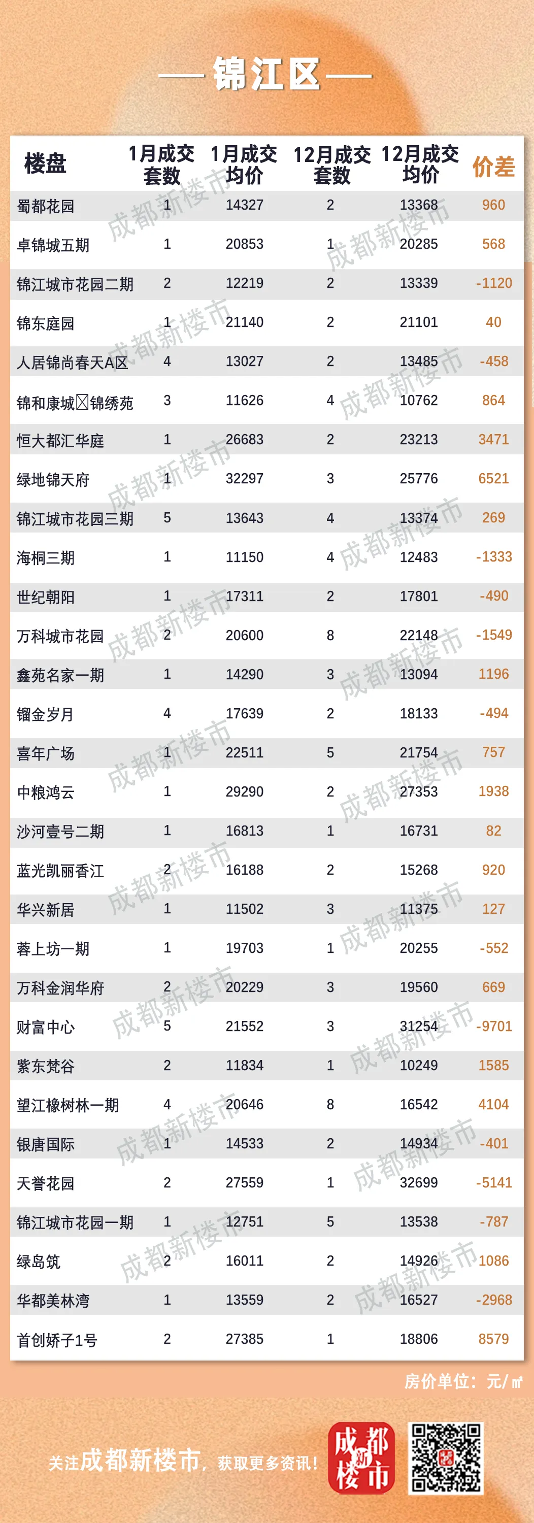 成都人来看你家的房子值多少钱了!1月成都二手房参考成交价格大全