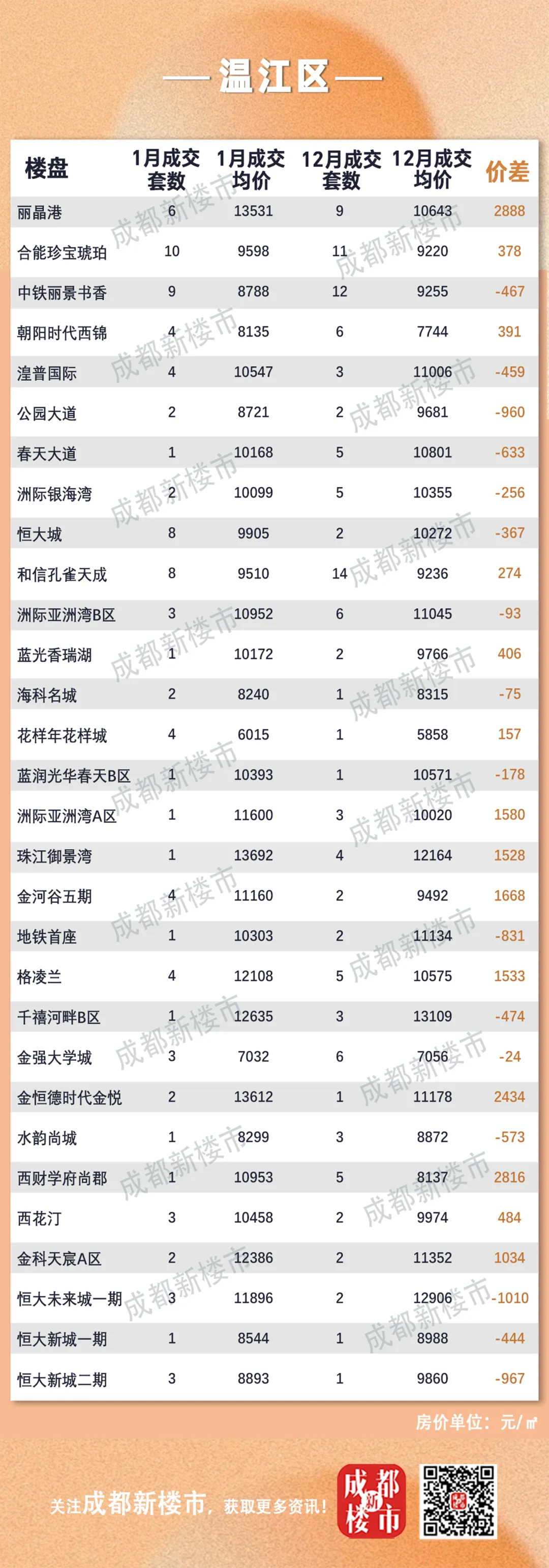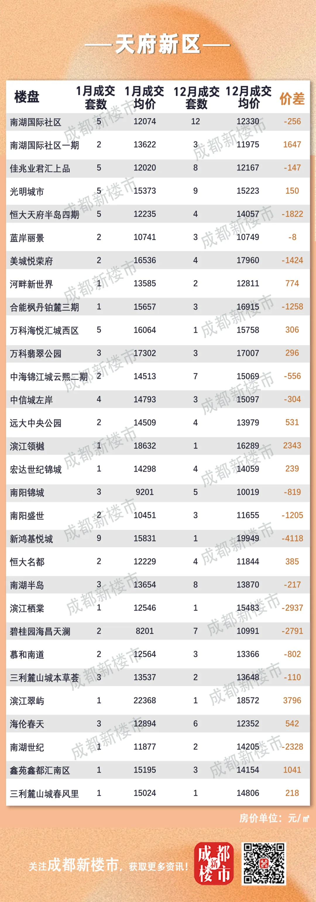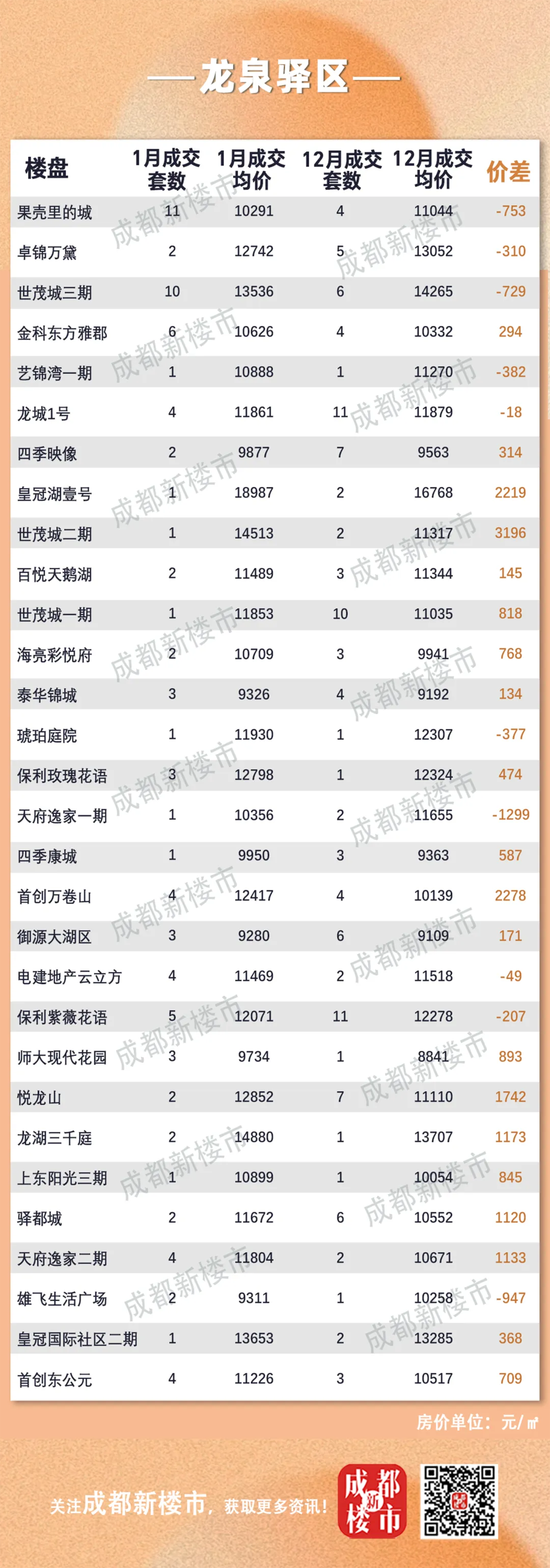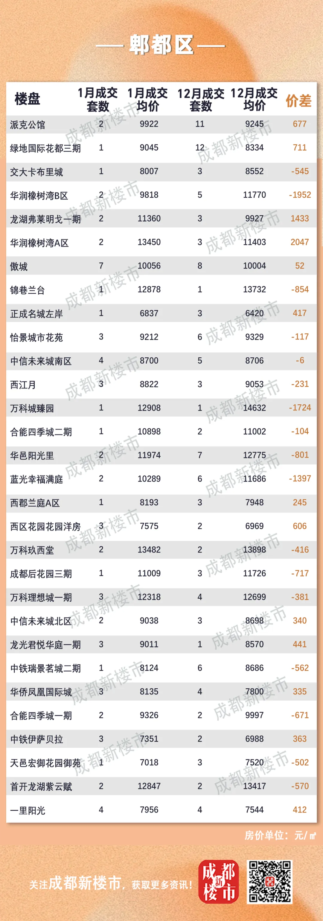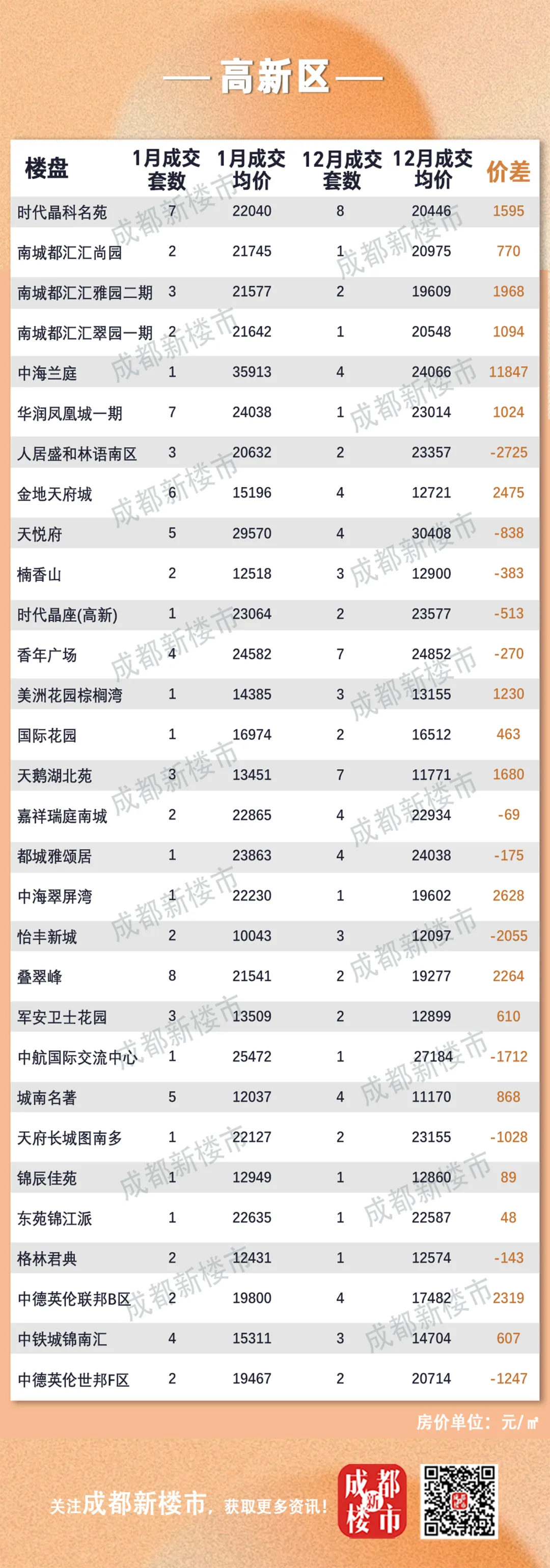 成都人来看你家的房子值多少钱了!1月成都二手房参考成交价格大全