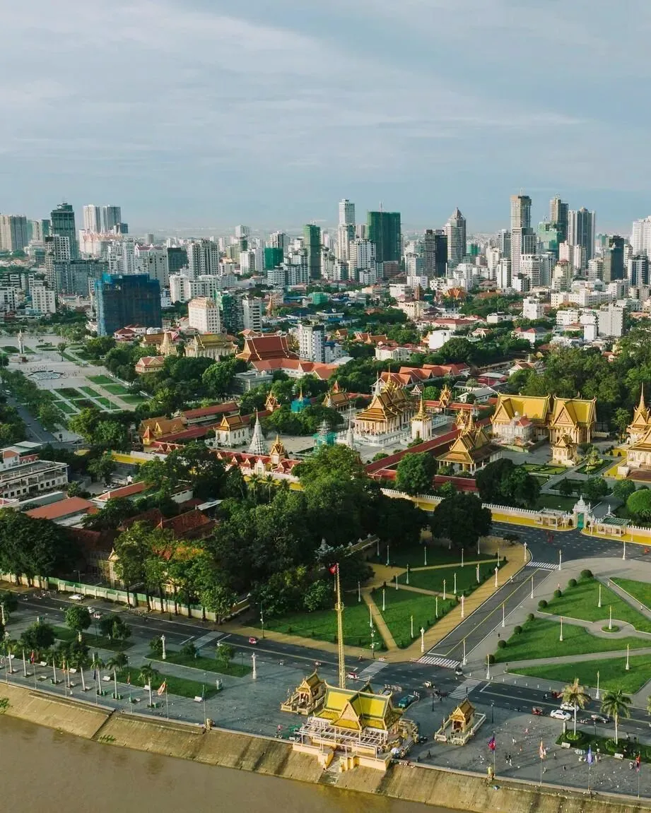 柬埔寨金边皇宫区域,周边林立高端住宅和办公楼