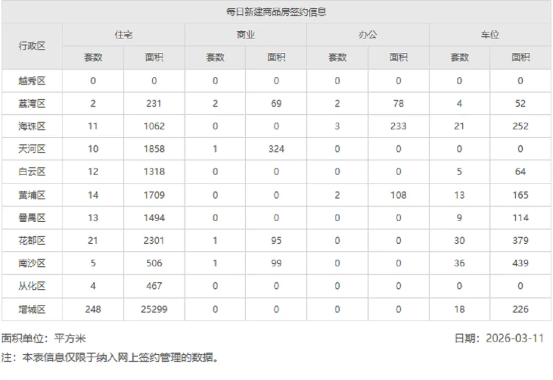 2026年3月11日新房网签数据