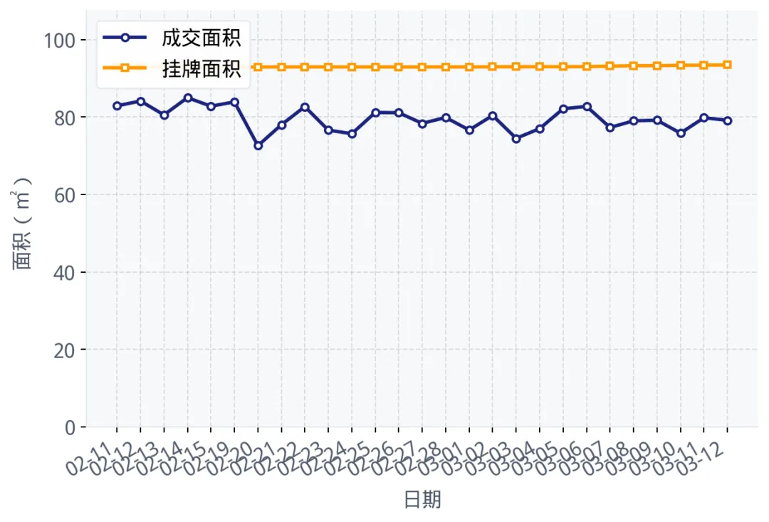 成交平均面积与挂牌平均面积对比趋势(近30天)