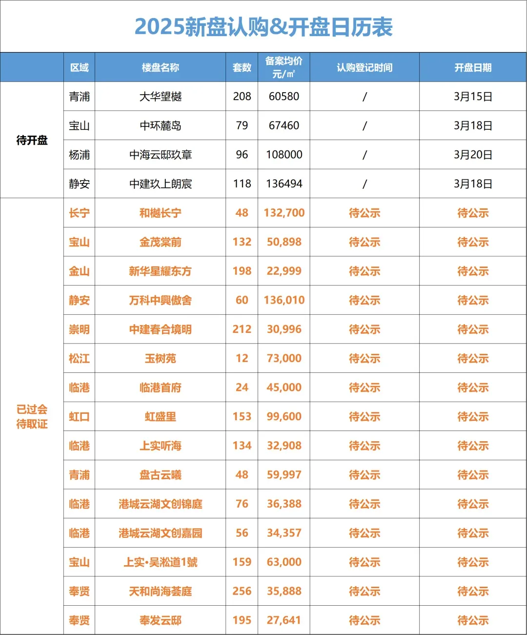 上海新房认购&开盘日历