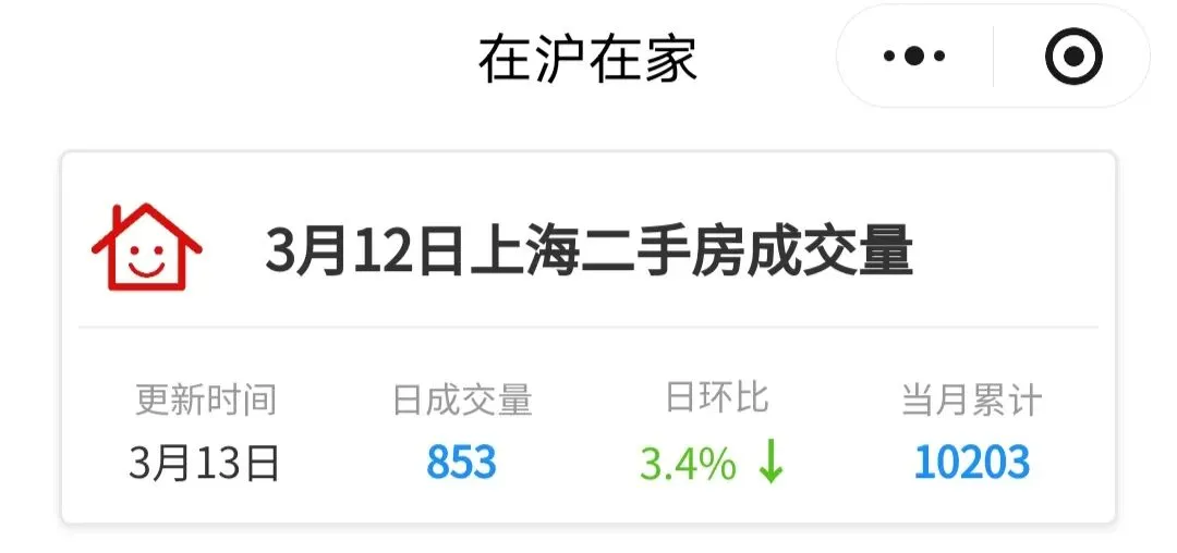1⃣️昨日上海二手房成交853套,日环比下降📉3.4%,当月累积成交10203套。