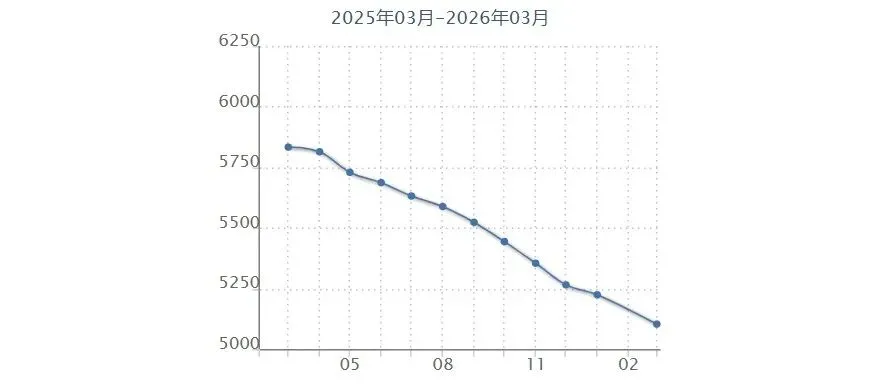 汶上其他3月二手房参考均价5103元/平,环比2月下降2.32%,同比去年同期下降12.52%。最近一年中,12个月房价下跌。