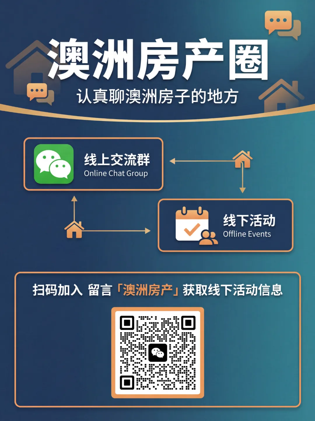 💬 扫码加入微信群📝 留言「澳洲房产」四个字,加入房产圈,获取线下活动信息