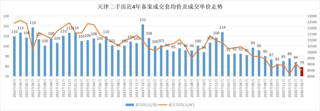 2026年2月 :挂牌参考价13930元/㎡,成交均价8494元/㎡,套均价79.01万元。