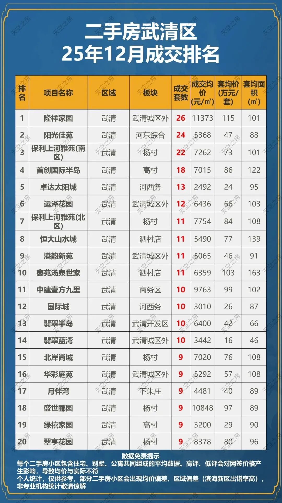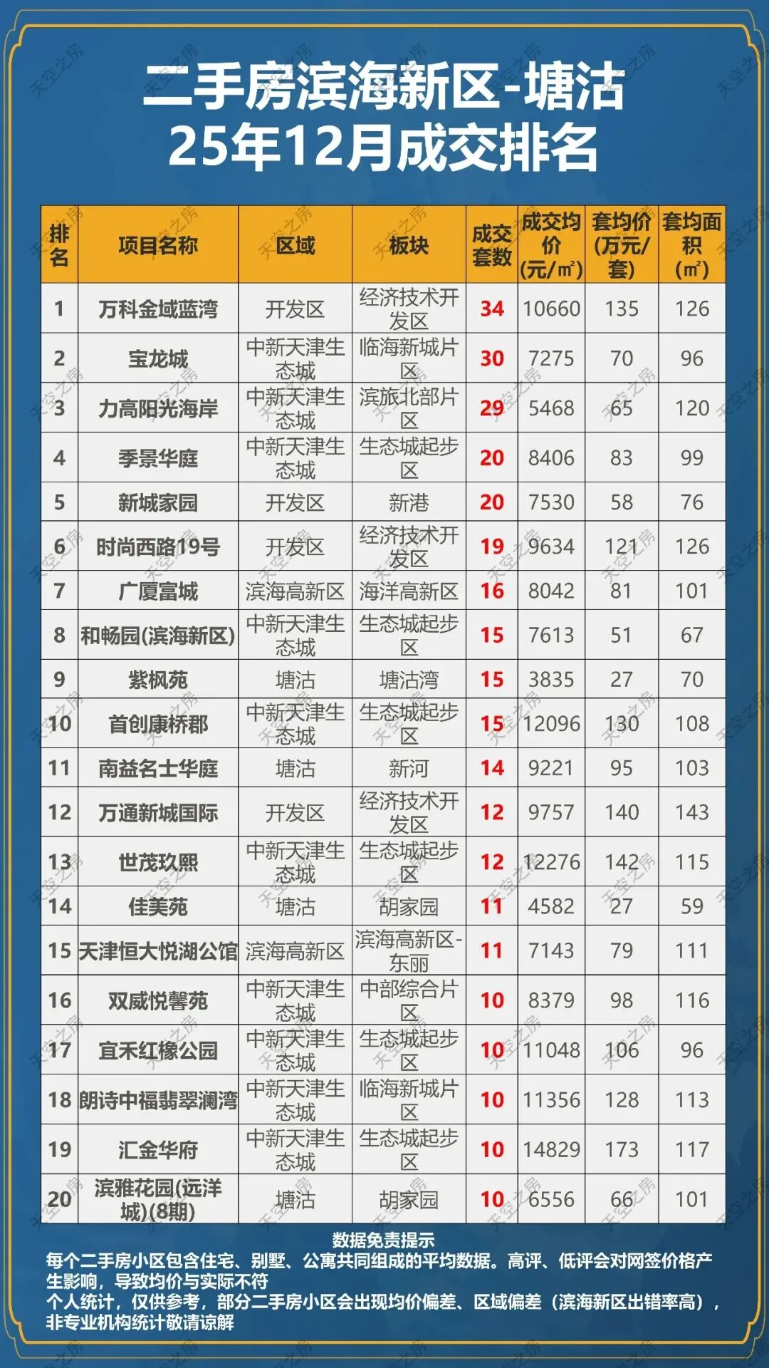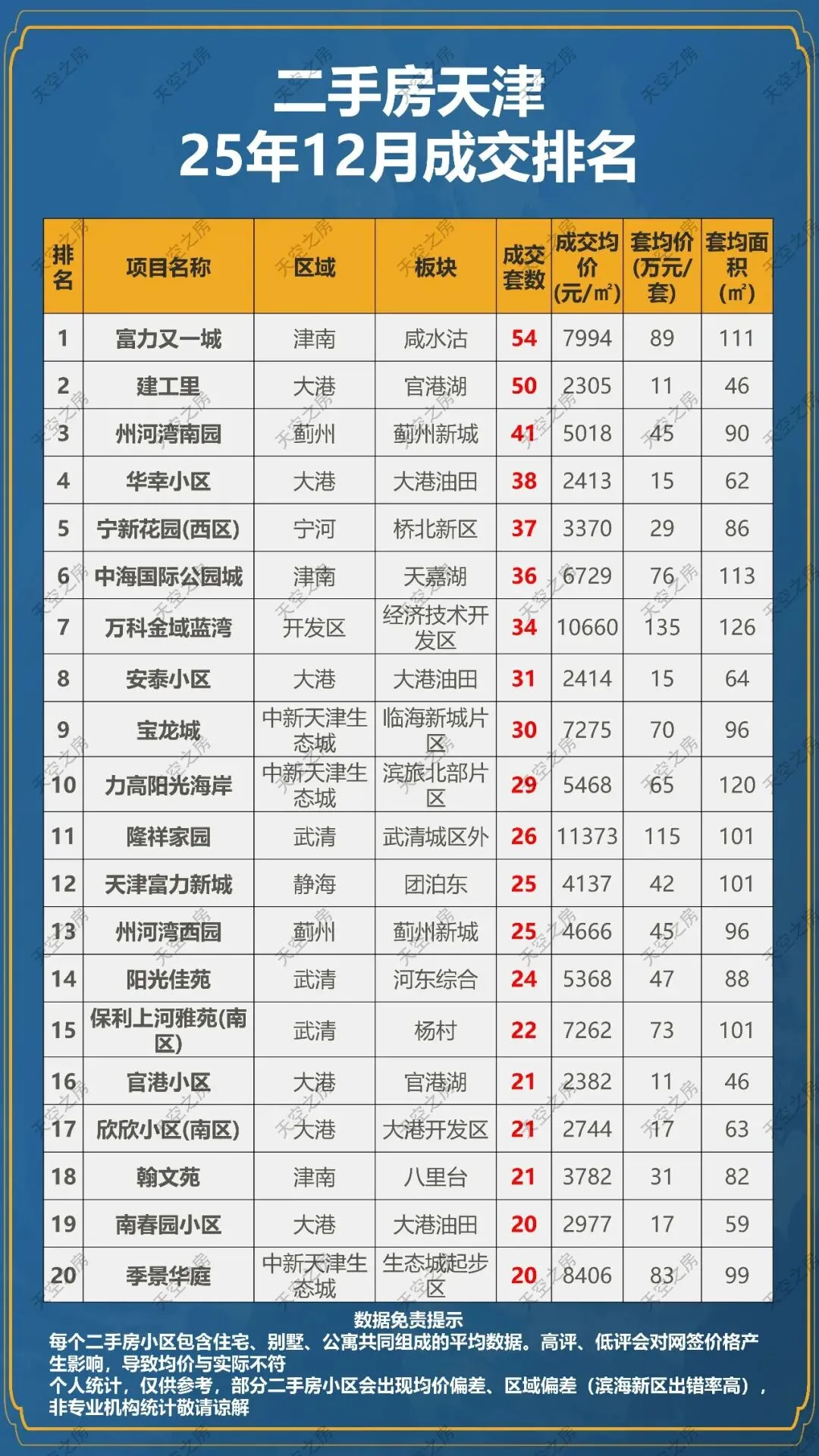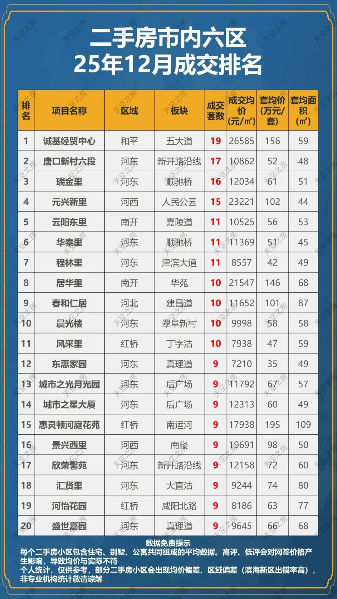 >二手房天津25年12月成交排名