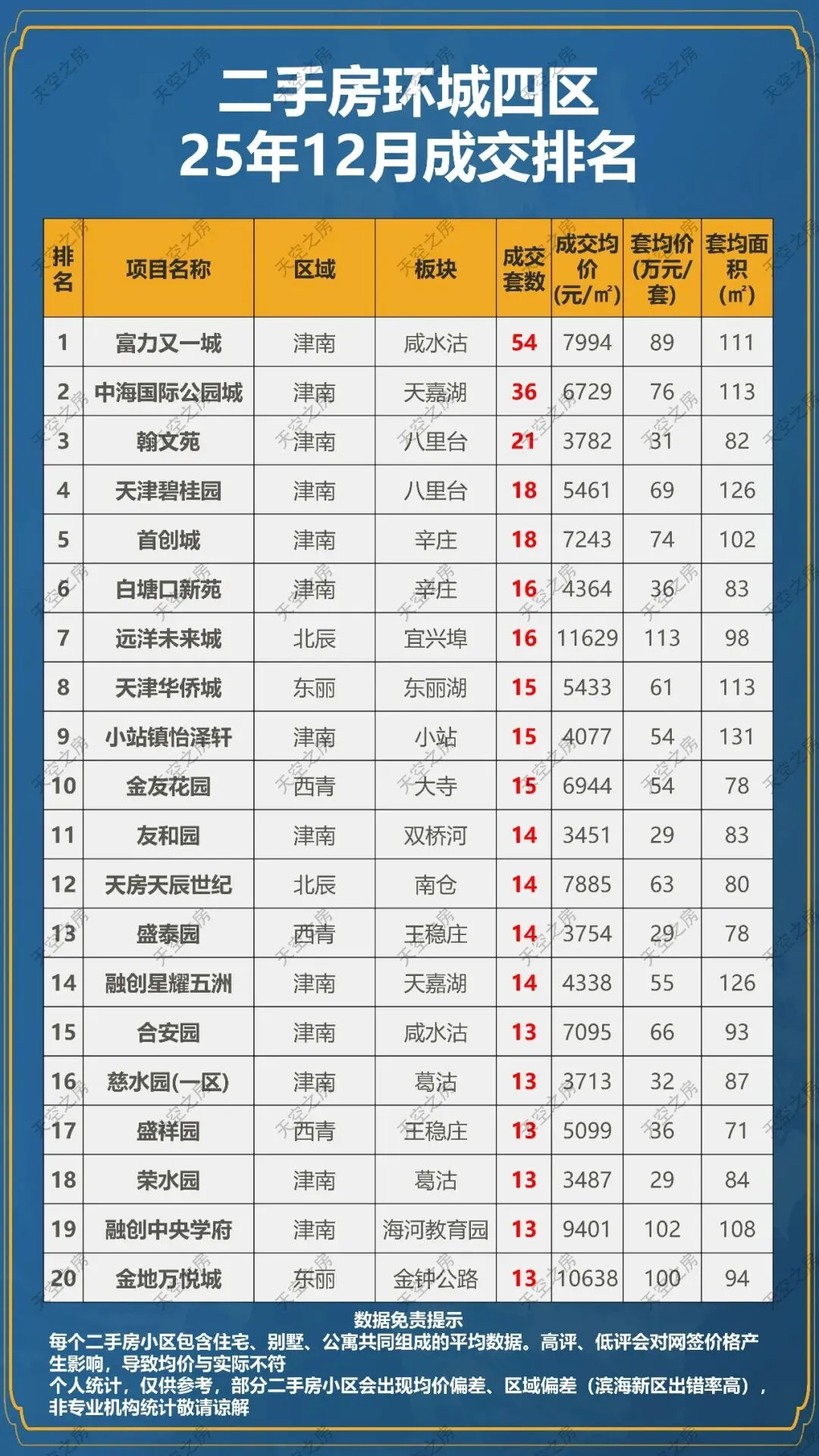 二手房天津25年12月成交排名