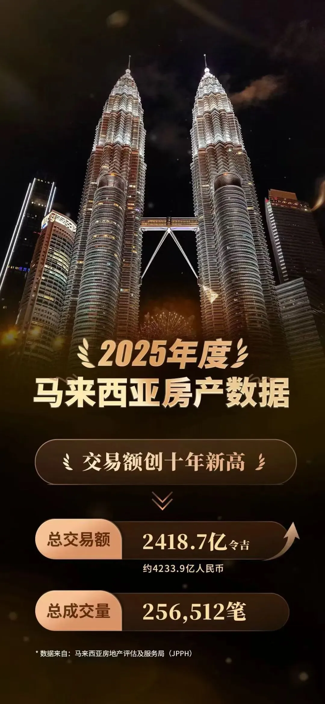 2025年马来西亚房地产市场全年交易额达2418亿⁺马币,直接刷新记录,创近10年新高!!