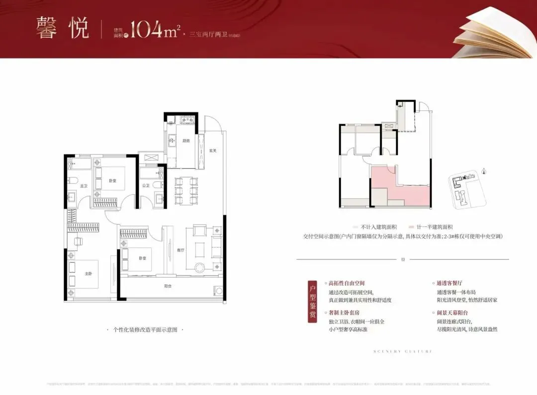 1、重视孩子教育的家长:想让孩子读长沙头部公办初中,预算不算特别高,又想兼顾自住,104㎡的户型是最优解;2、投资客:长沙优质学区房的流通性和抗跌性都强,江悦和鸣作为郡外本部独一份的新规盘,稀缺性高。慎入的人群,别为了学位硬上车