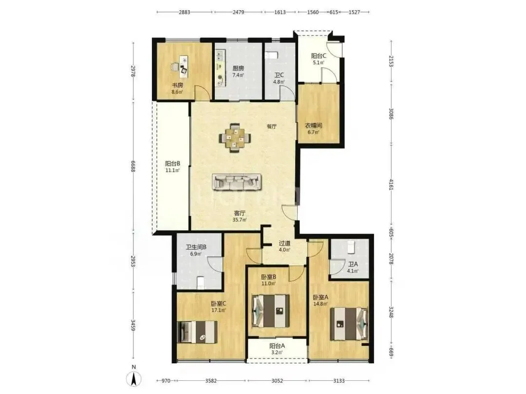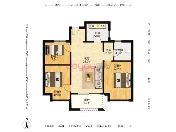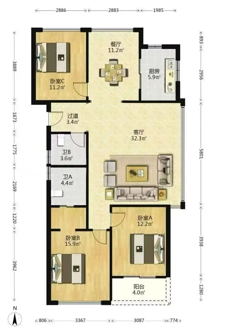 上城区城东新城,万科草庄面积86.84㎡,3房1卫户型,269万带车位