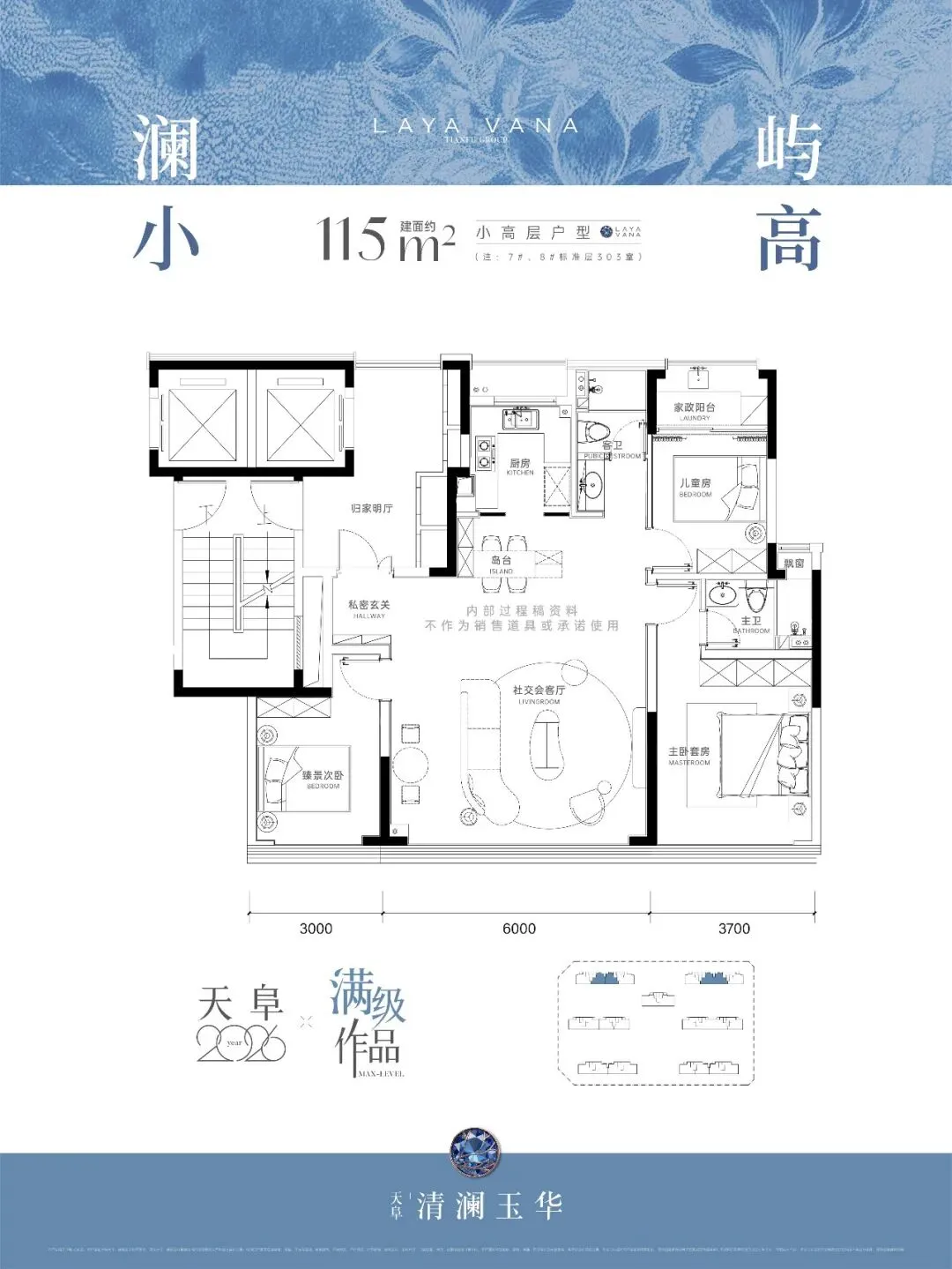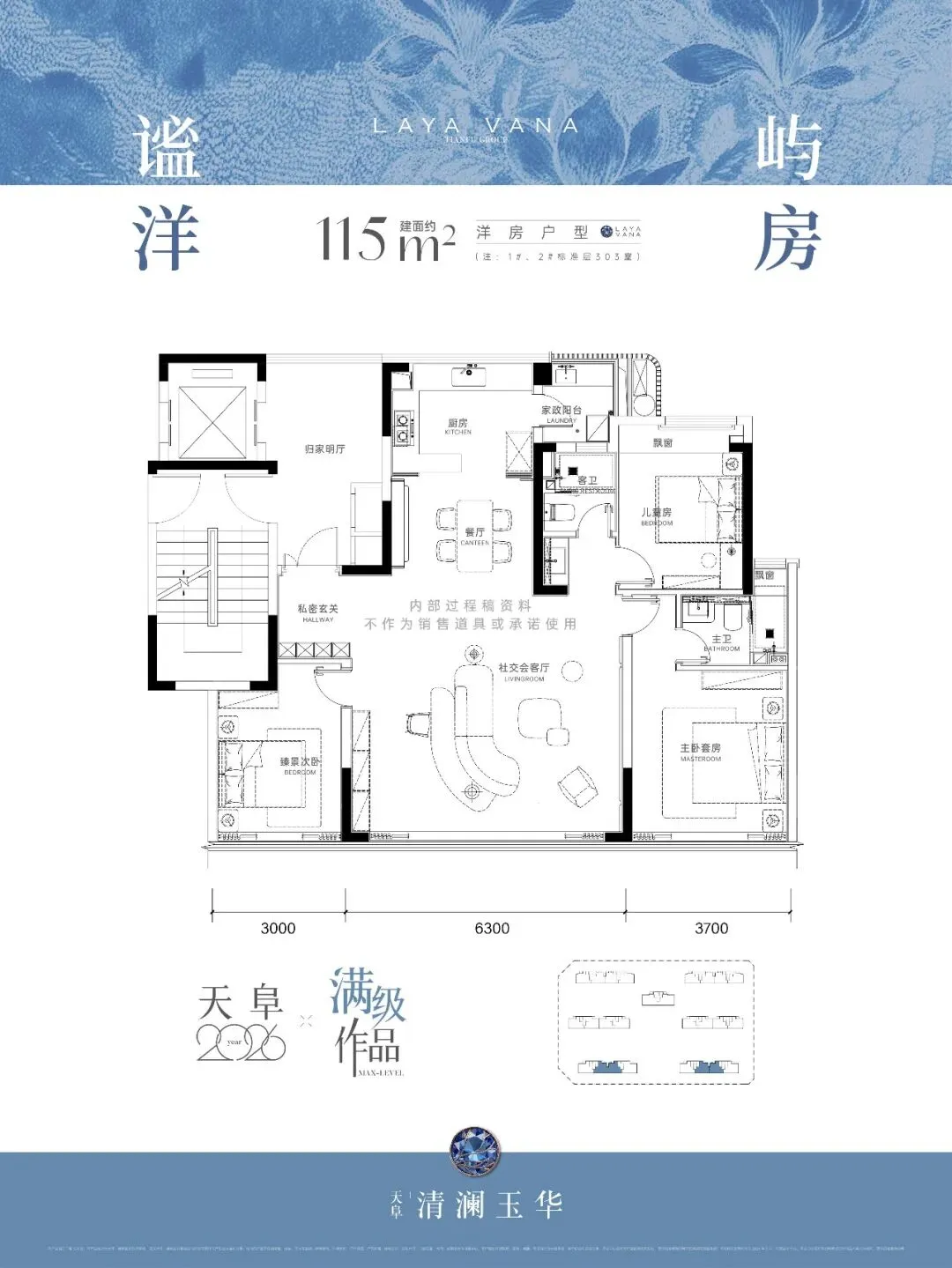 第一、这是天阜清澜玉华小高115㎡的户型图,你看,就连115㎡的户型,他都做到了约6米的宽厅。