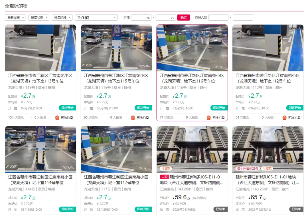 近日,小编发现,赣州蓉江新区一批产权车位被法拍,起拍价2.7万!