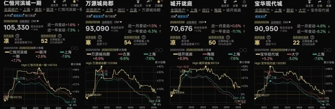 更典型的例子是浦东新杨思的万科新里程与金色里程,我在2024年的分析中就指出,这两个小区相比同类产品跌幅更深,价格可能被低估。随后市场下行中,它们确实表现出更强的抗跌性,验证了通过“相对价值”分析预判轮动方向的可行性。