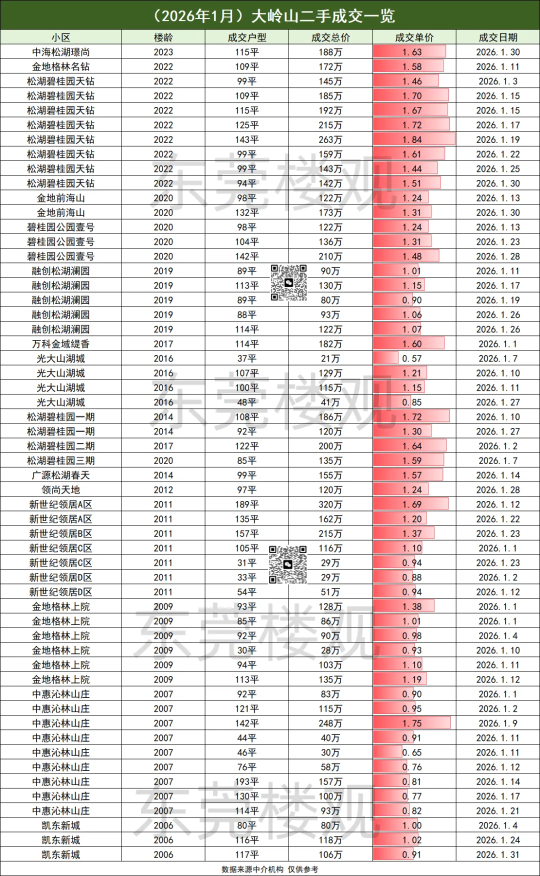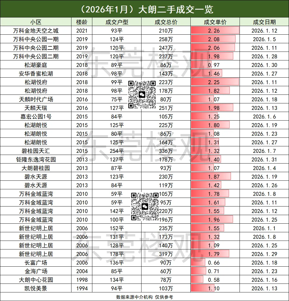2026年1月东莞房价: