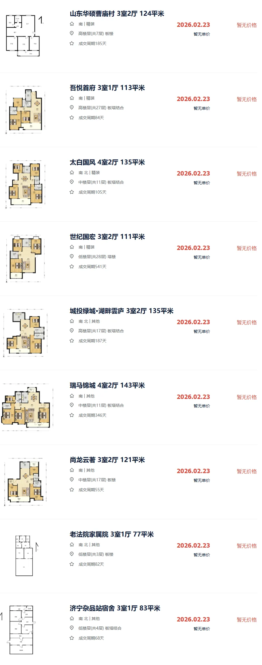 济宁二手房成交市场价参考|2月23日