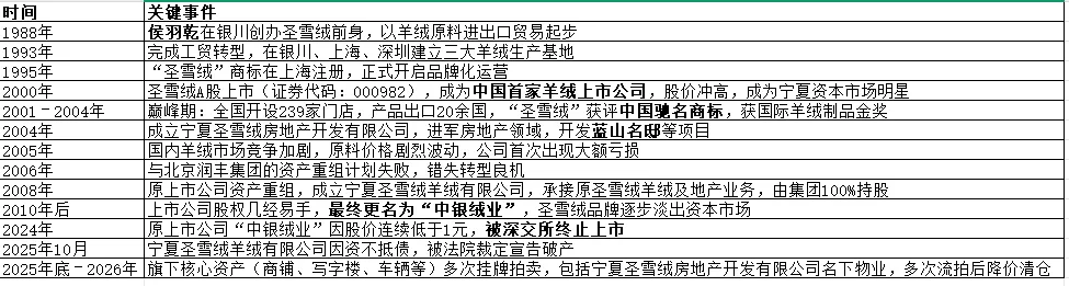 此后,圣雪绒一步步滑向深渊:上市公司股权几经易手,最终更名为中银绒业,却在2024年因股价连续低于1元而退市;核心的羊绒业务被拆分重组,宁夏圣雪绒羊绒有限公司因资不抵债,在2025年10月被法院宣告破产。
