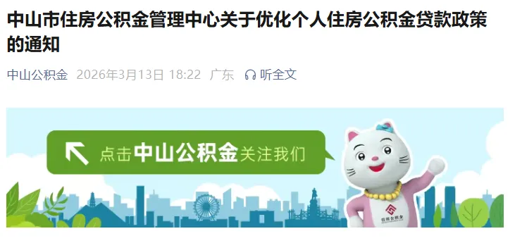 就在刚刚,中山公积金发布了《中山市住房公积金管理中心关于优化个人住房公积金贷款政策的通知》。各住房公积金缴存职工: