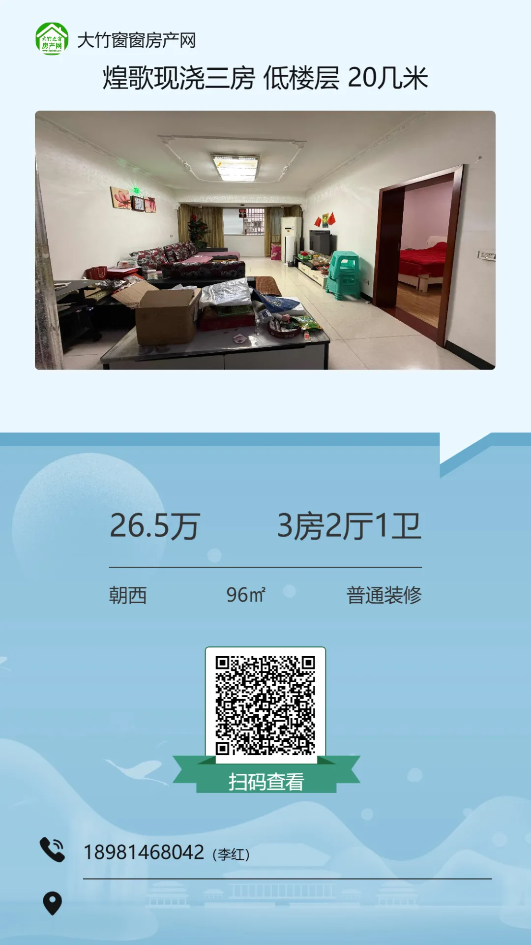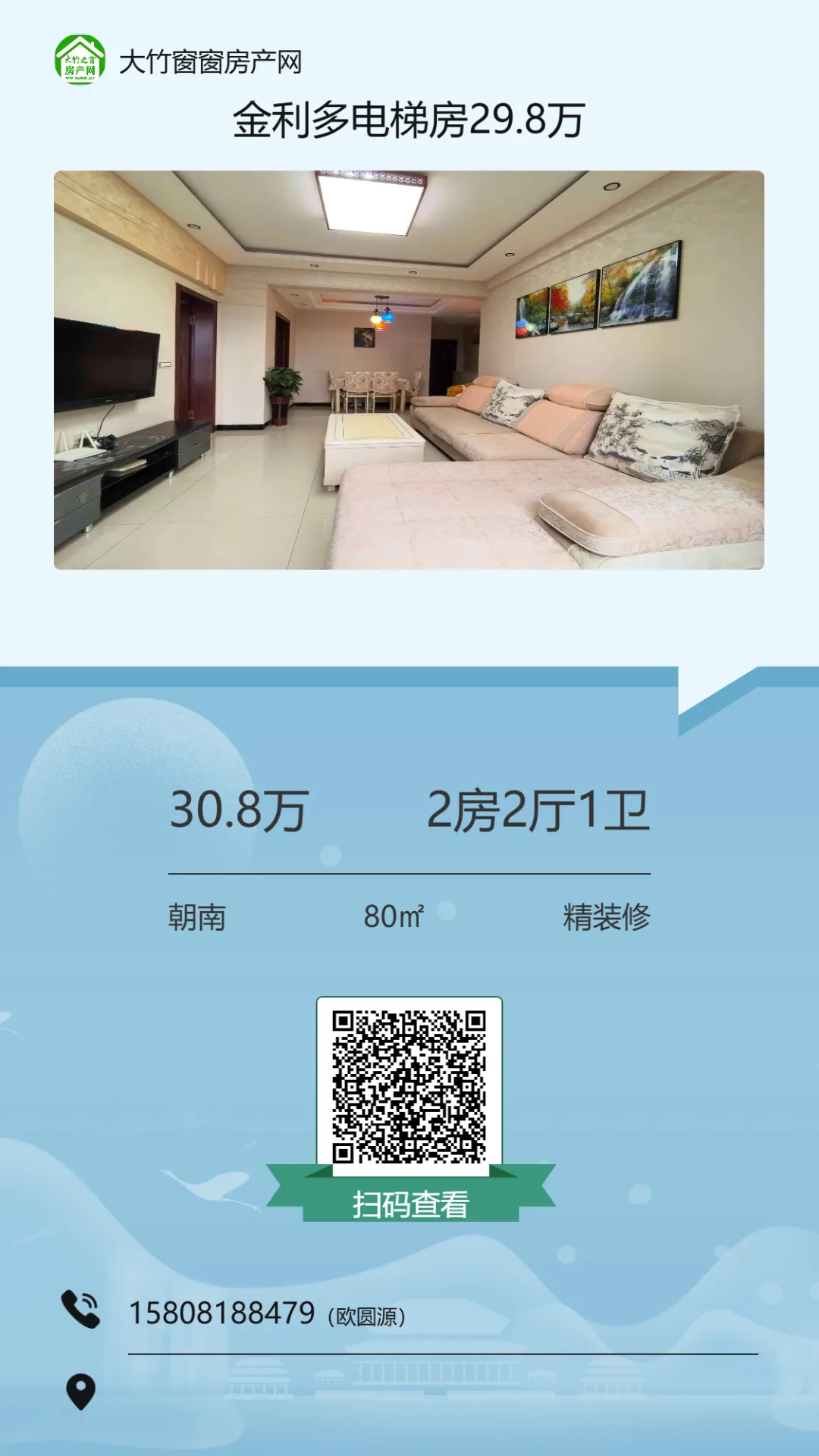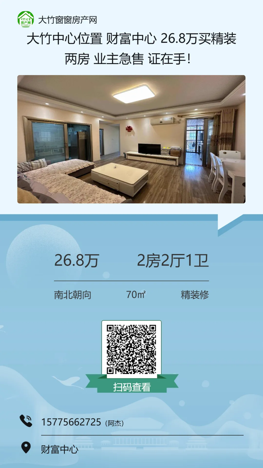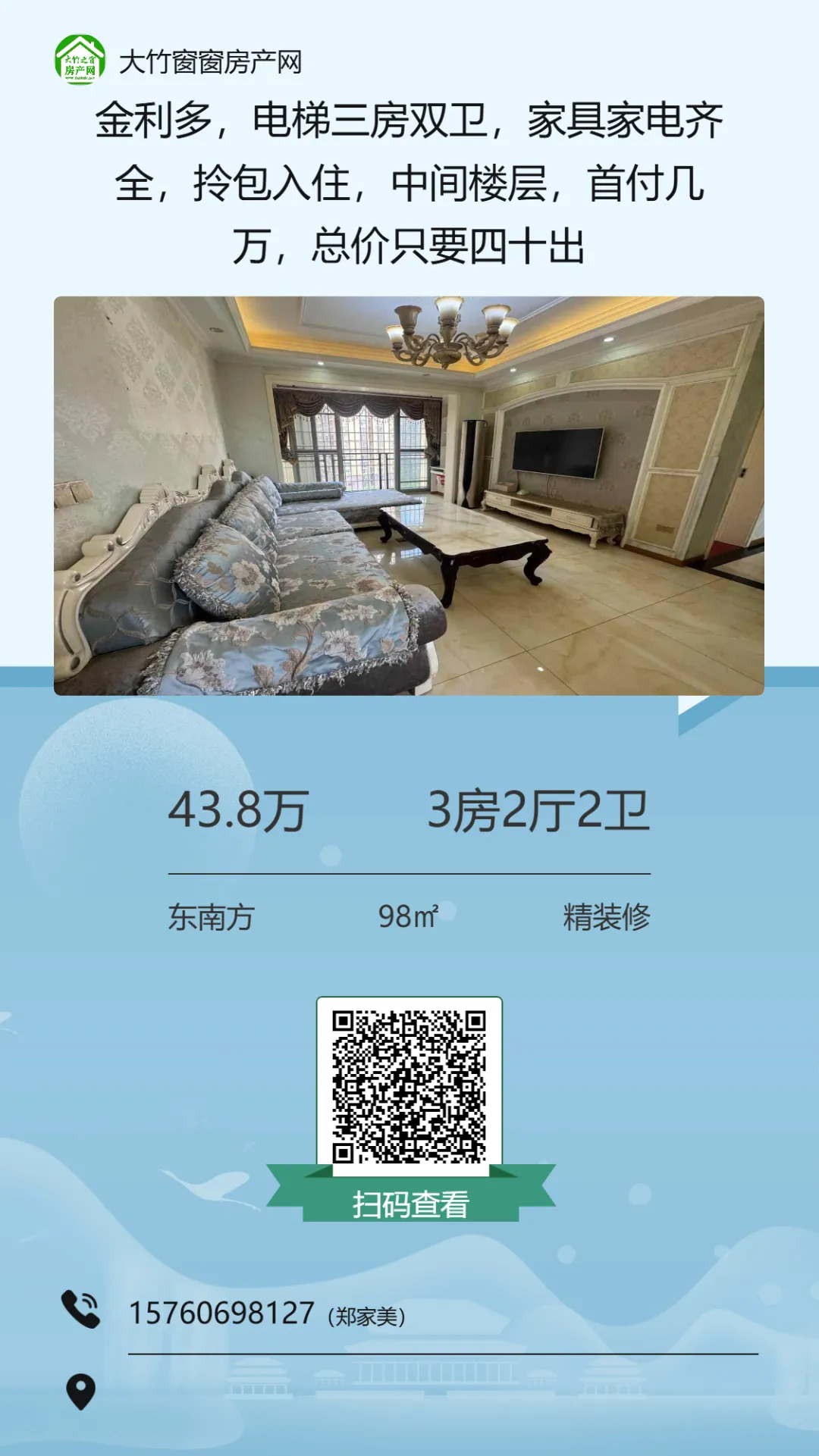 【大竹房产】二十多万的电梯房,还带装修,先到先得