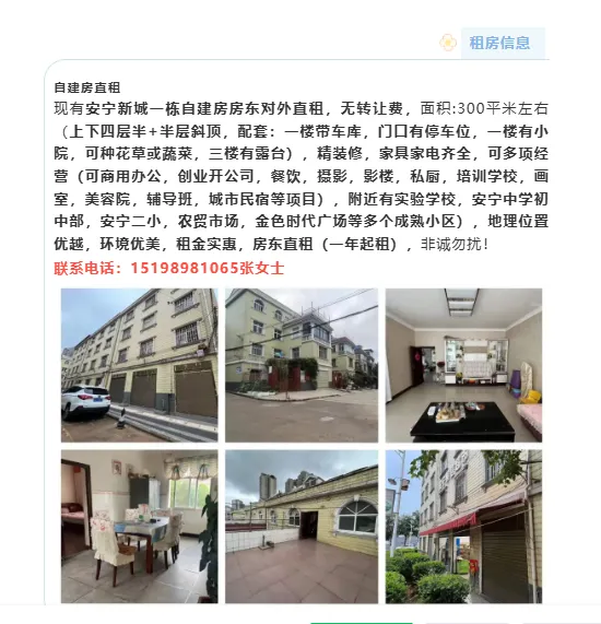 【安宁房产非中介3.14】现有安宁金方路金安巷一房屋对外出租,80平米,采光好,地理位置佳,简单家具,有意者速看!