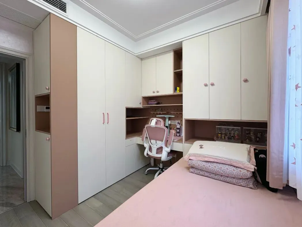 儿童房以温柔治愈的粉色作为主色调,既兼顾儿童日常居住与成长需求,更能凸显女孩房的灵动与柔美。