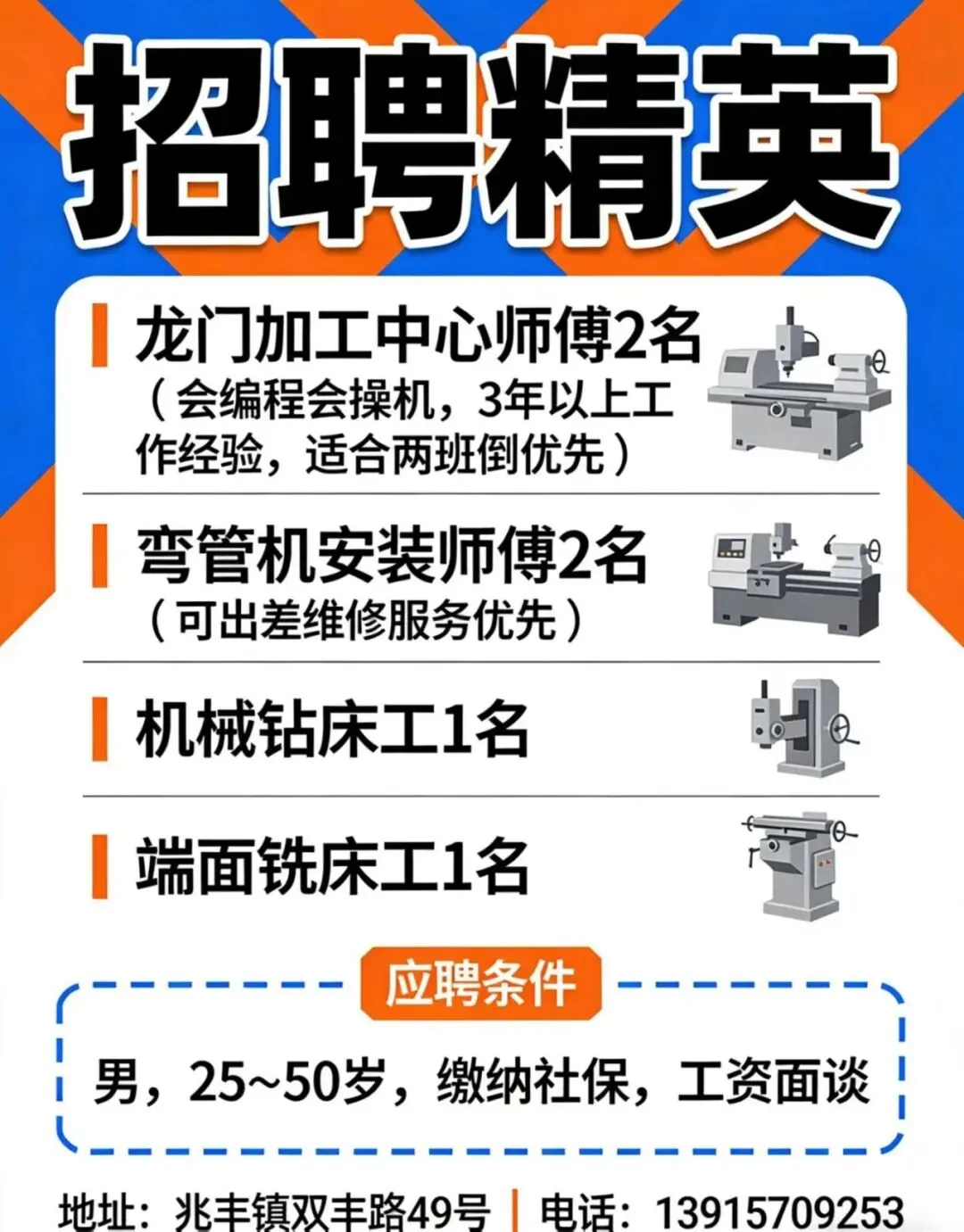 【岗位要求】年龄25-50,吃苦耐劳,动手能力强