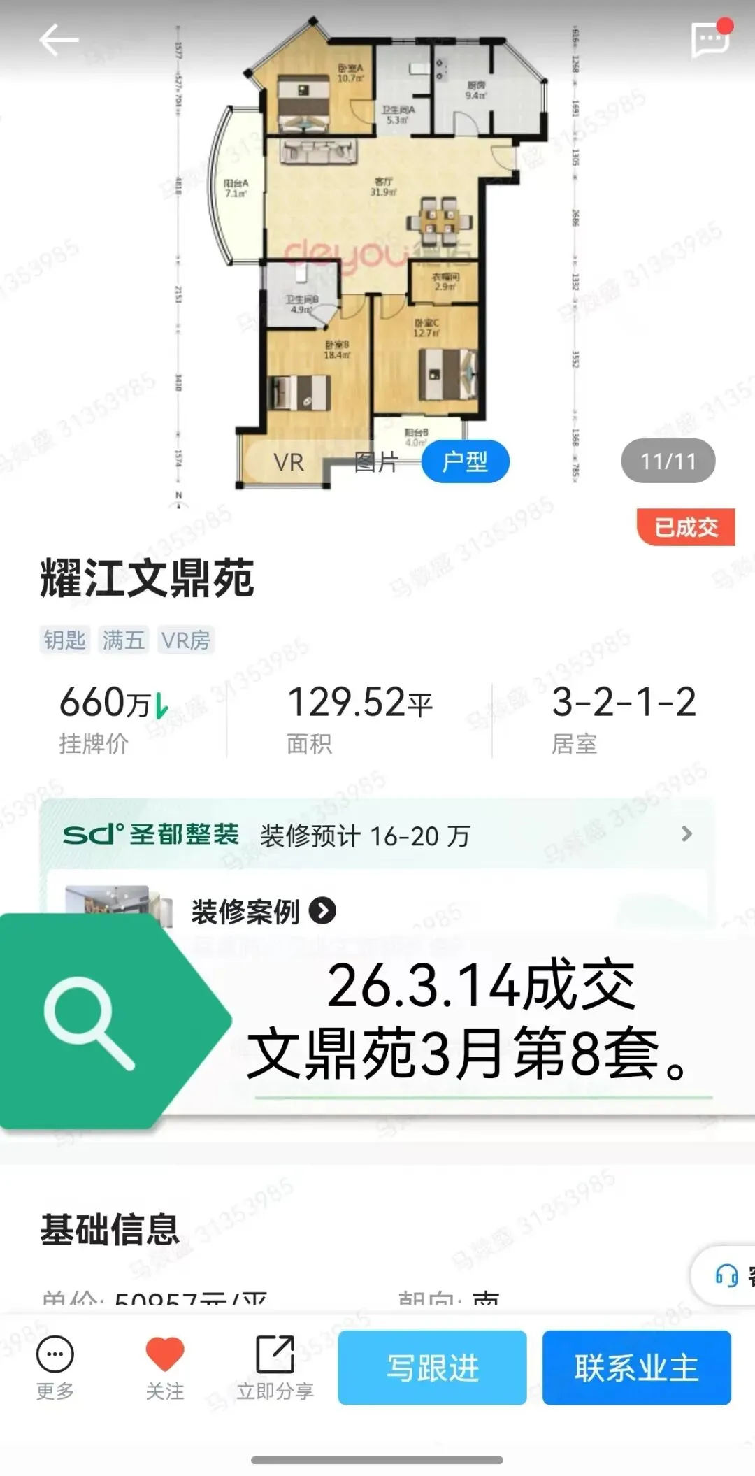 总价基本在1100w左右,和年前基本上差不多的价格了。