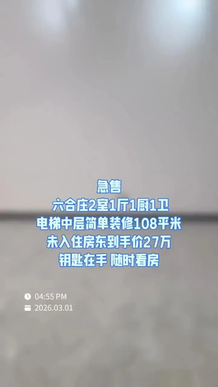 房屋详情:六合庄园电梯洋房 未入住2室2厅1卫西户 27万全款简单装修 现房买完即可入住 购房热线18838533368微信同号 【玖悦府】宽境美宅 唯美开卷 全城争抢,火爆销售中, 特价3688一平米提前预留