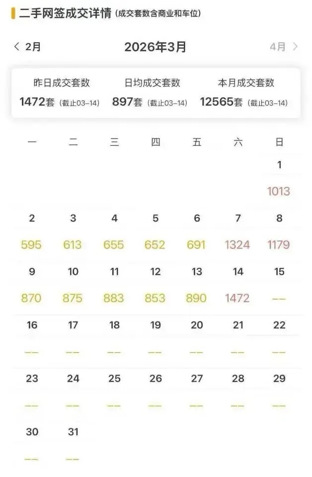 2026年3月14日,上海二手房网签系统数次崩溃,多家中介公司表示网签系统中断,大家都在猜测成交数据会突破历史新高。2026年3月15日早,官方数据官宣,成交数据1472套,刷新近5年最高单日成交数据。三月截止14号,成交数据12565套,预计本月会突破历史新高。本月目前根据市场反应来看,房东的价格不再像年前那样可以大幅还价,甚至出现有部分房东价格上涨的情况,特别是在老破小的房源中,尤其比较常见。金三月,值得期待。有需要买房,卖房,置换,欢迎随时咨询