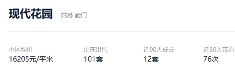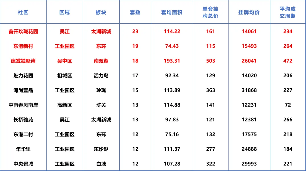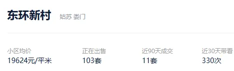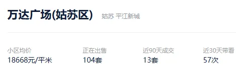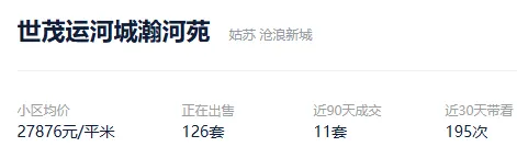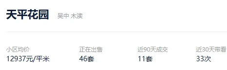 根据贝壳数据显示,2026年1月1日以来,苏州市区成交了3336套二手住房,涉及了75个板块的1367个社区及组团,套均成交面积110.39平,平均挂牌单套总价213万元,挂牌单价19267元/平,平均成交周期267天。