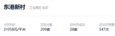 根据贝壳信息显示,东港新村目前209套挂牌出售,挂牌均价21058元/平。
