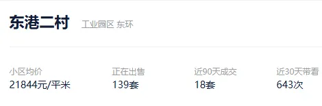 根据贝壳信息显示,东港二村目前139套挂牌出售,挂牌均价21844元/平。