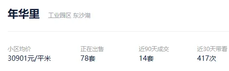 根据贝壳信息显示,年华里目前78套挂牌出售,挂牌均价30901元/平。
