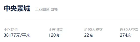 根据贝壳信息显示,中央景城目前120套挂牌出售,挂牌均价38177元/平。