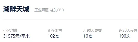 根据贝壳信息显示,湖畔天城目前102套挂牌出售,挂牌均价31575元/平。
