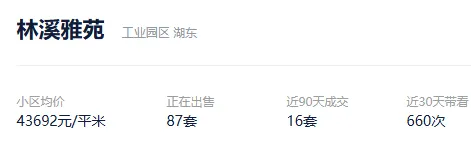 根据贝壳信息显示,林溪雅苑目前87套挂牌出售,挂牌均价43692元/平。